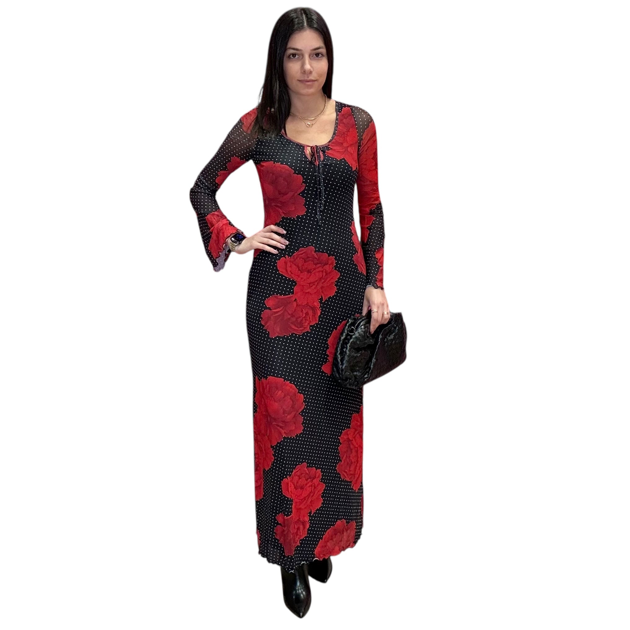 Black Floral Polka Dot Maxi Dress