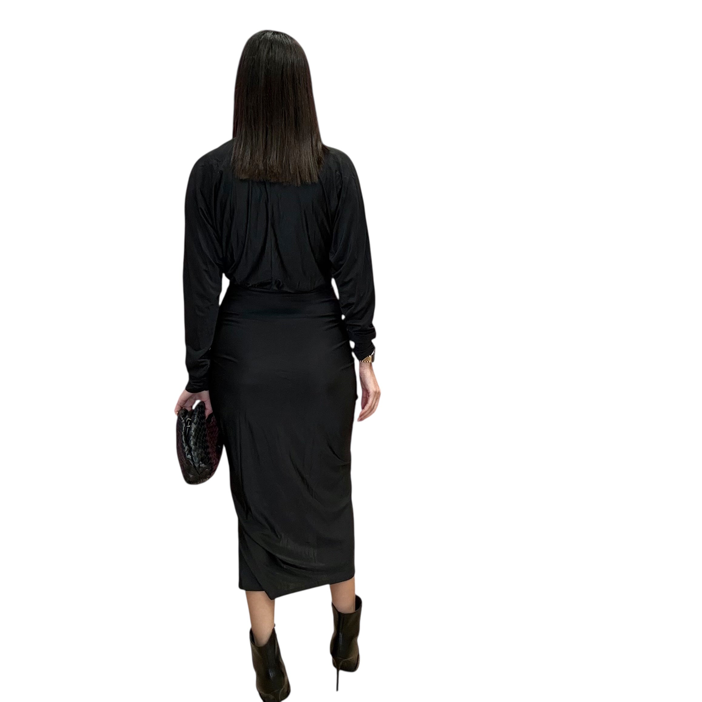 After Hours V Neck Midi Dress – Black
