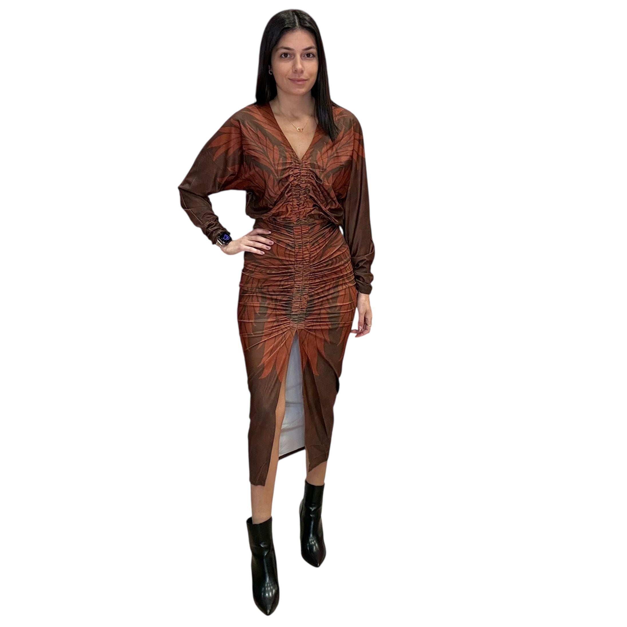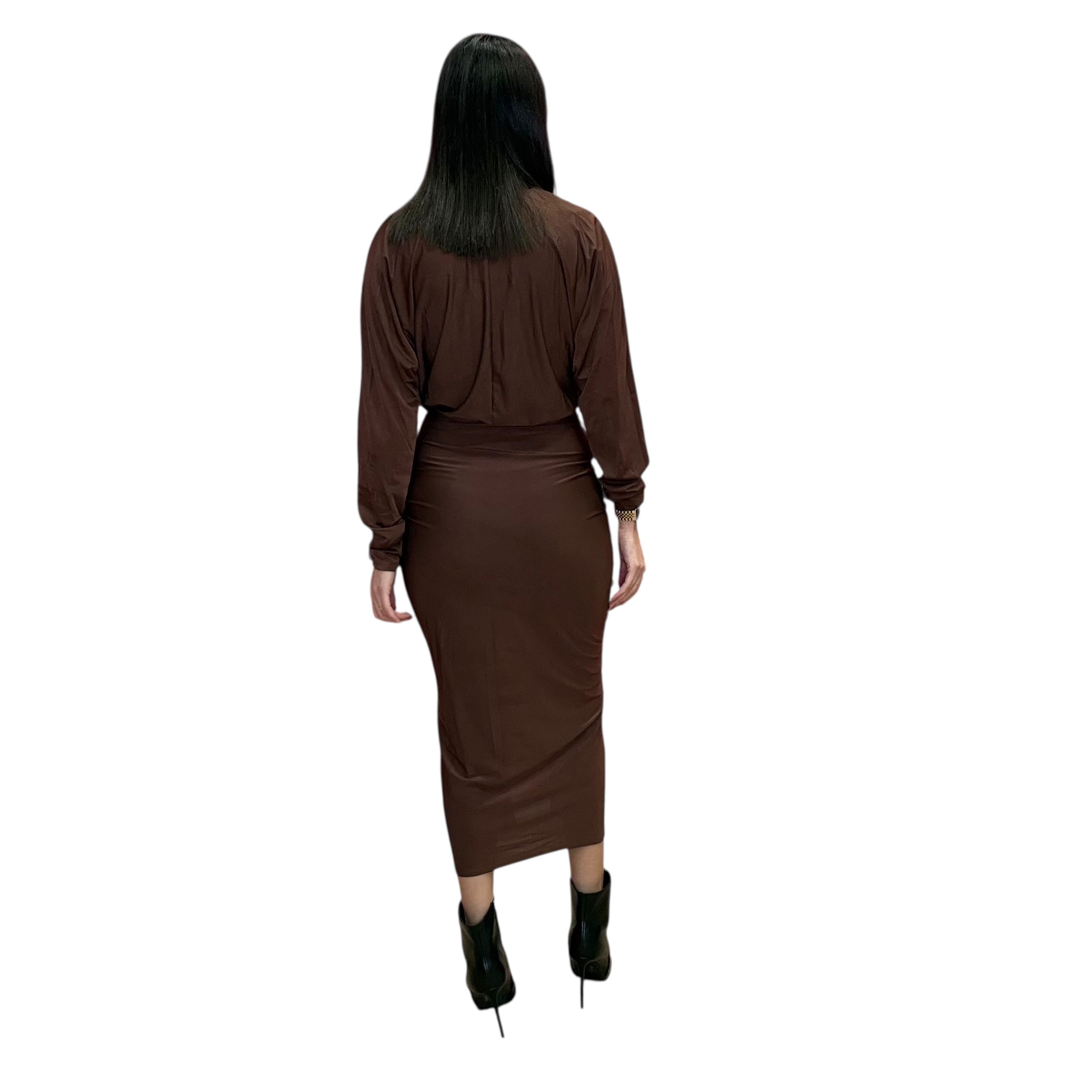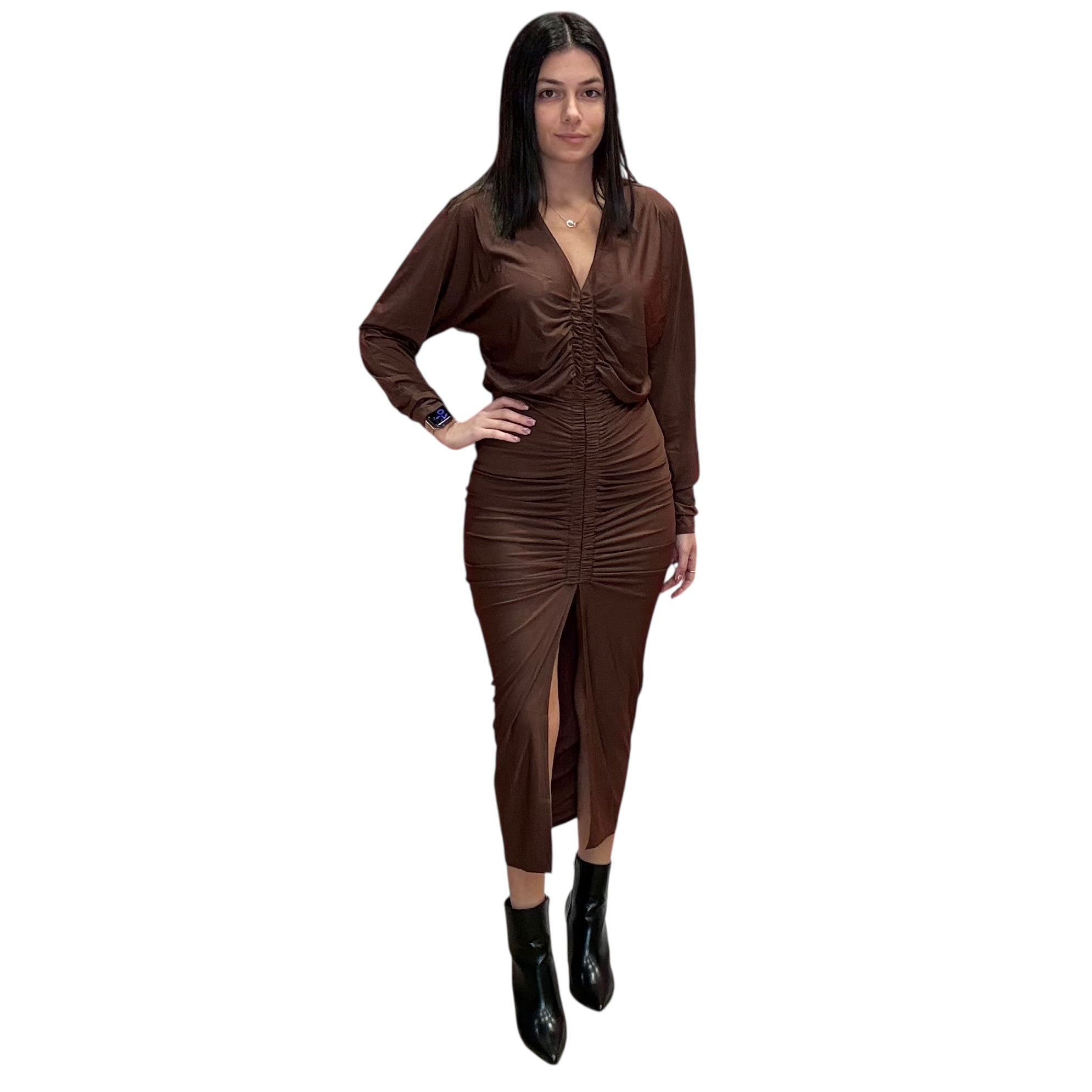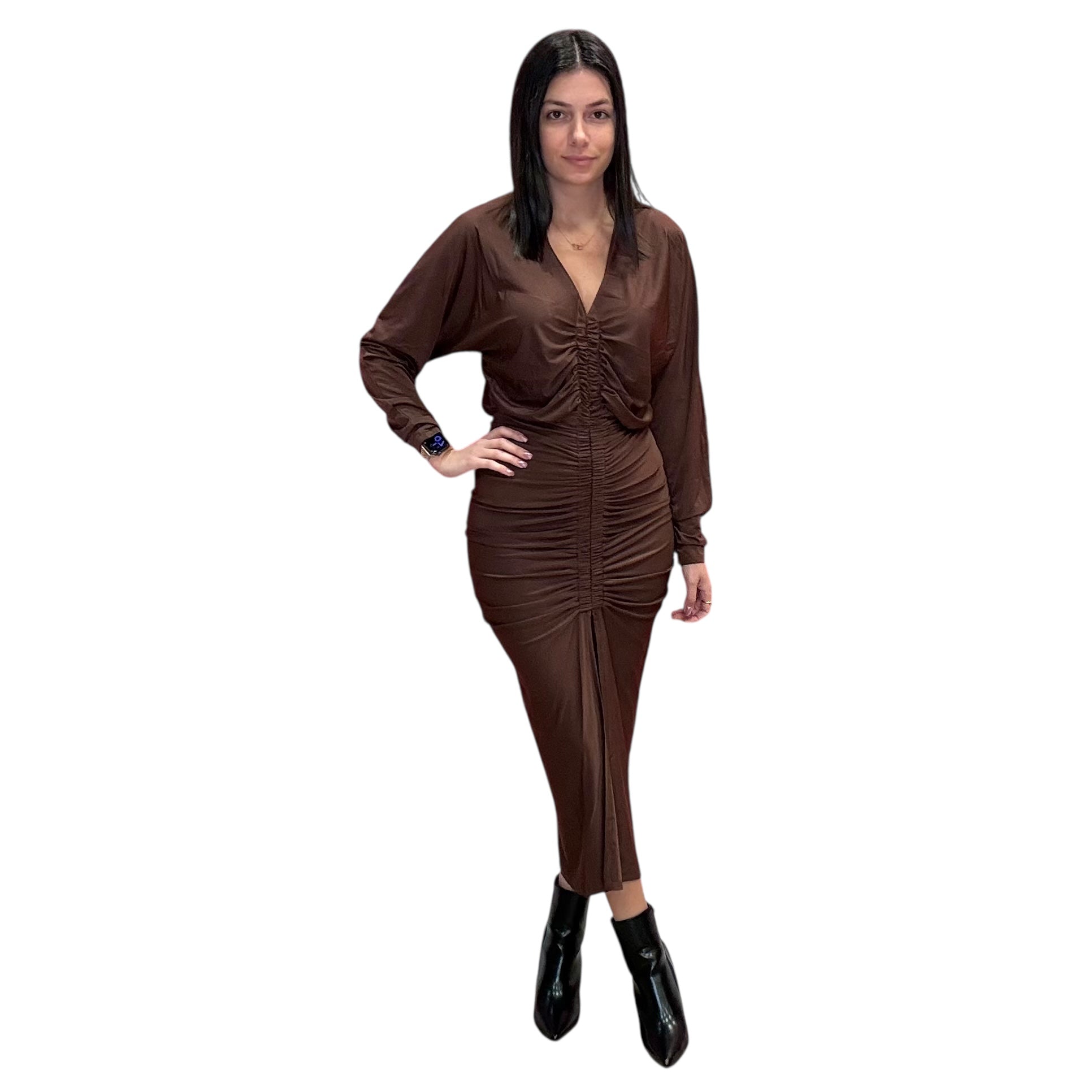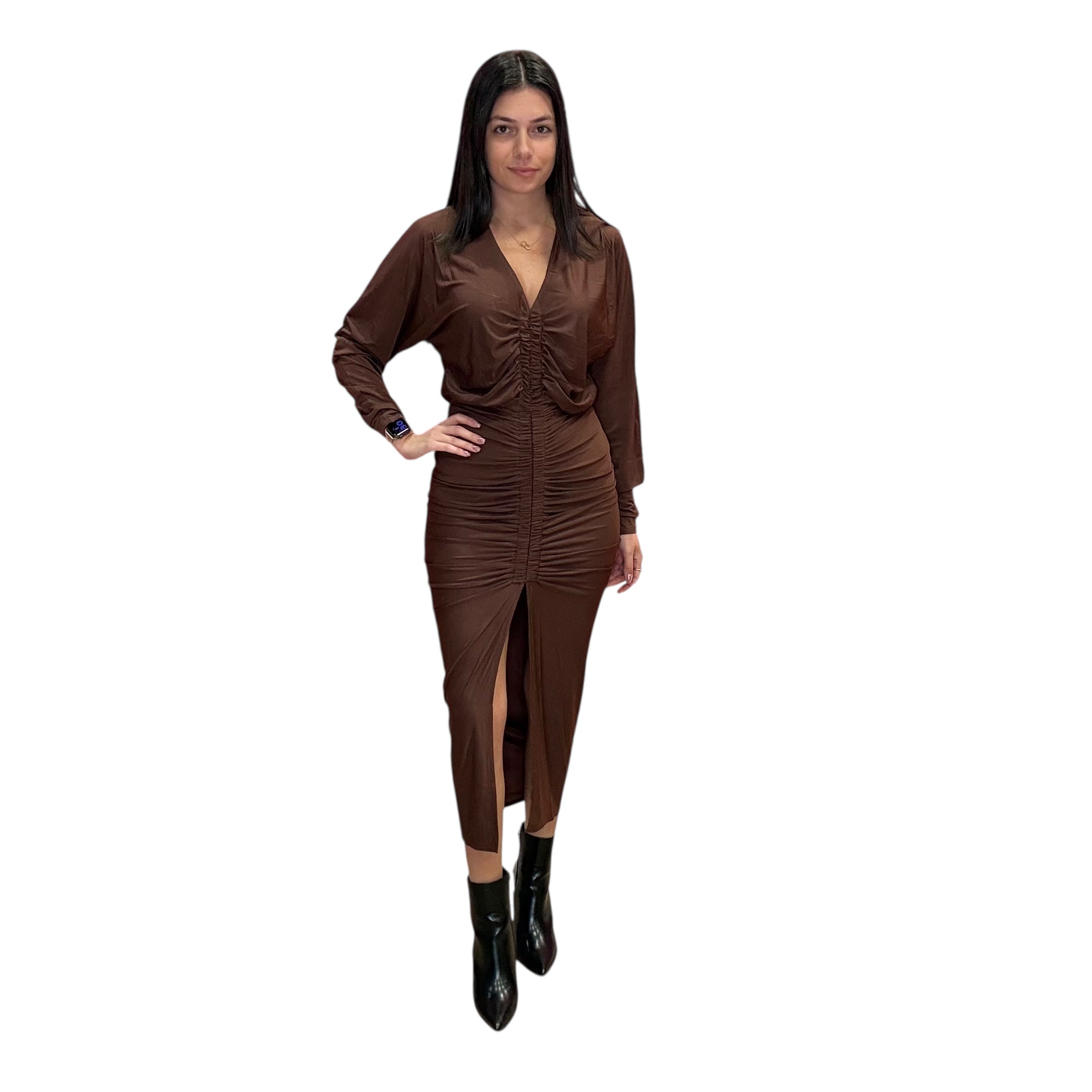 Mocha Ruched Midi Dress