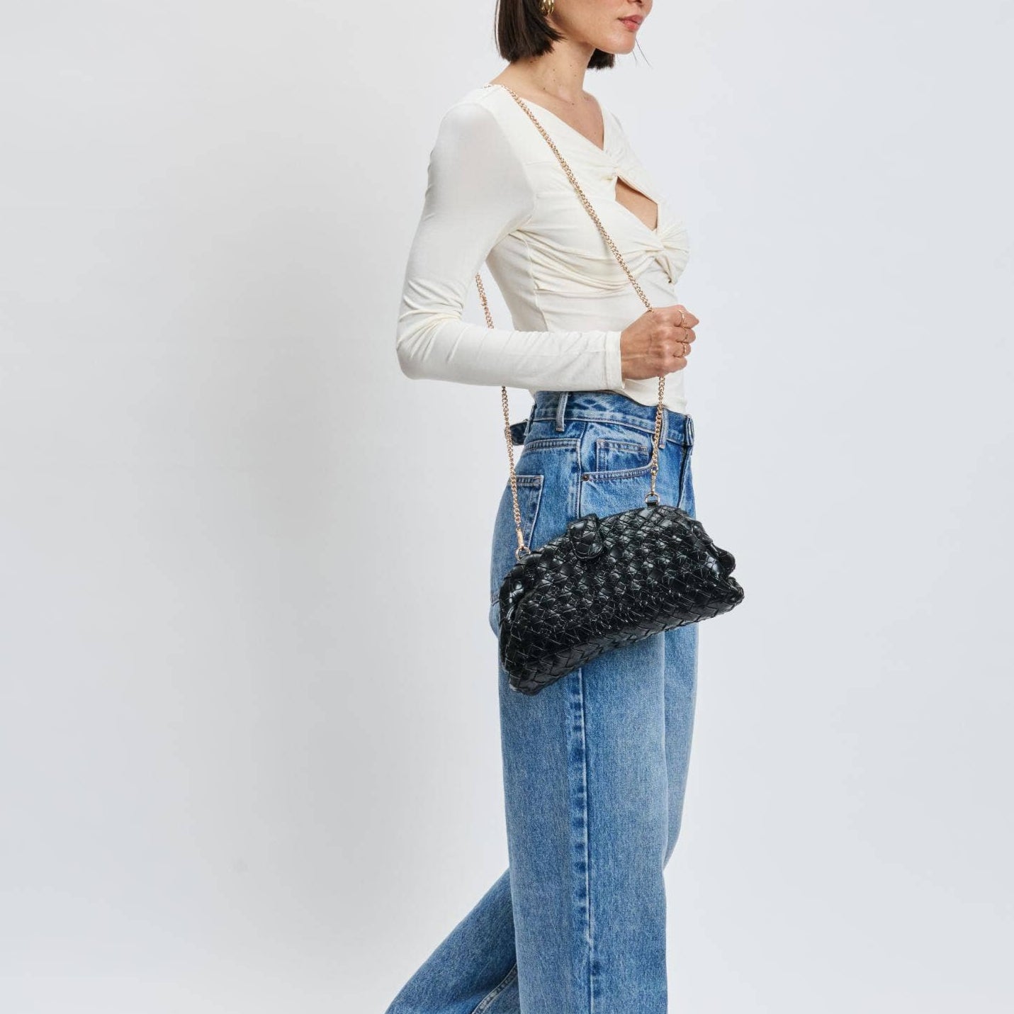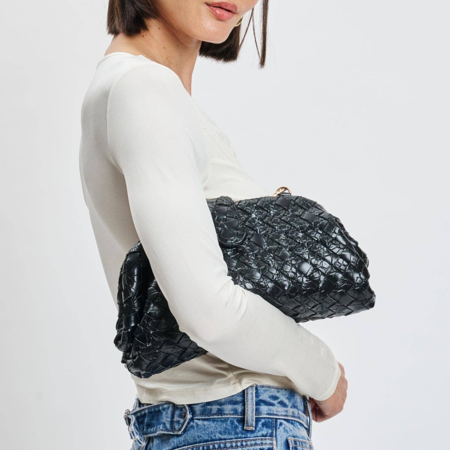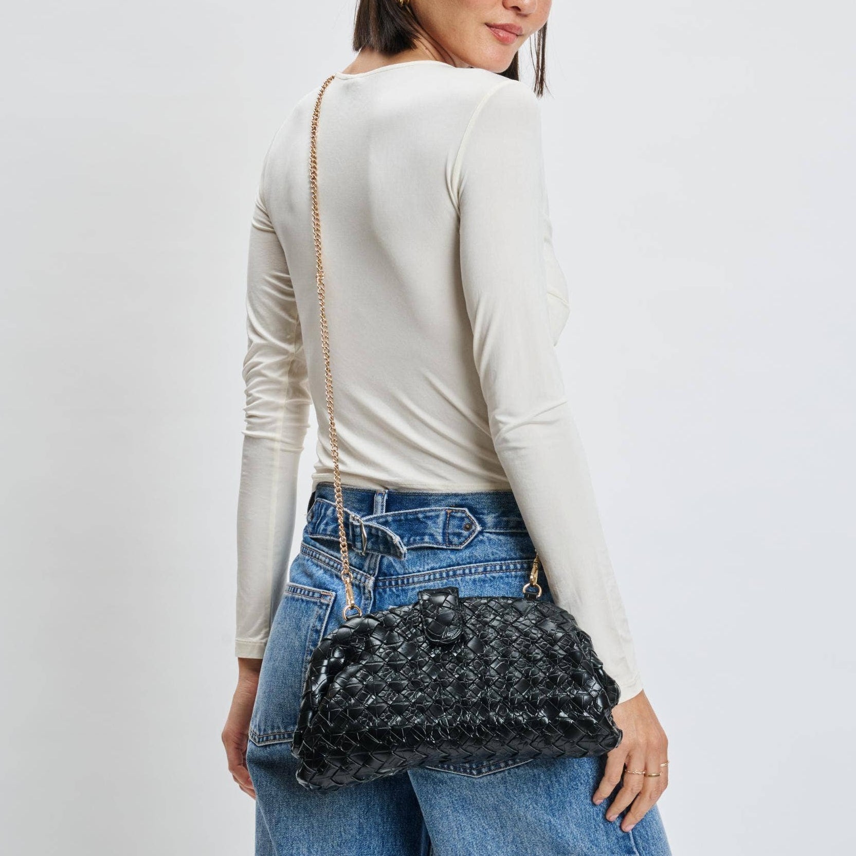 The Black Woven Crossbody is the ultimate day-to-night essential. With a sleek woven texture and structured silhouette.