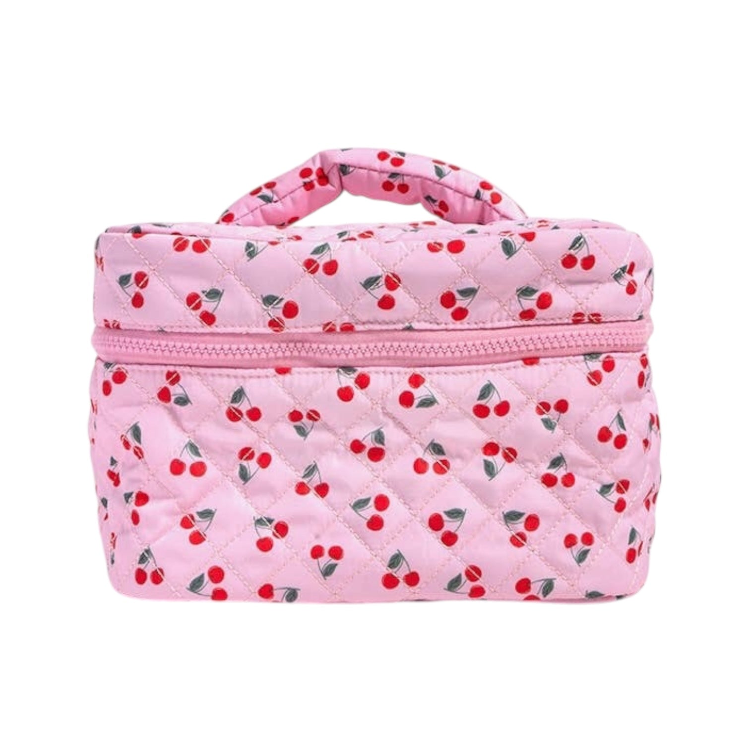 Your beauty essentials but make them adorable. This pink cosmetic travel case with cherry print keeps makeup, skincare, or toiletries organized while you’re on the go. Lightweight, functional, and seriously cute—perfect for trips or everyday toss-in bags. 🍒