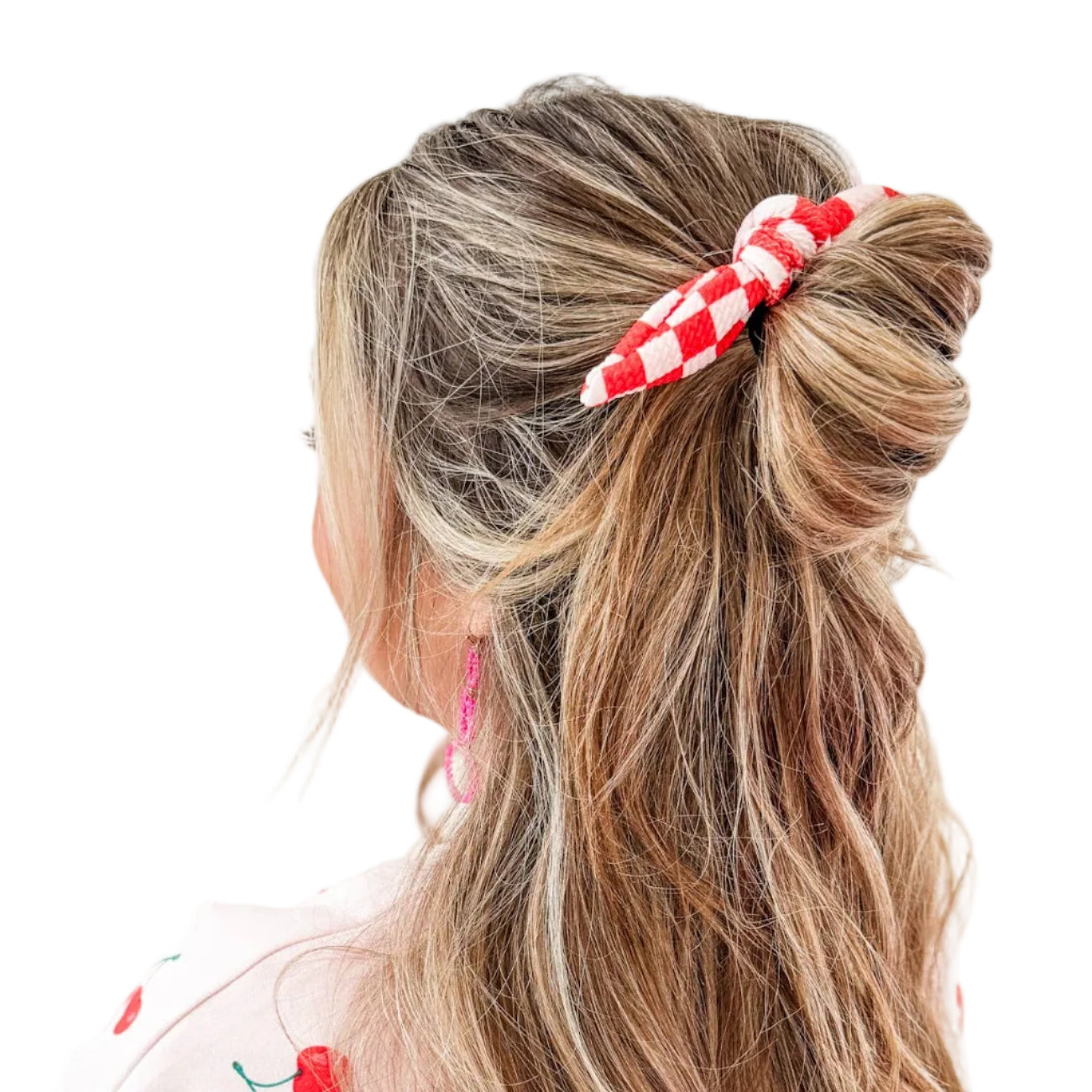 Playful, cute, and full of charm, this red and pink checkered pony bow adds a fun pop to ponytails, braids, or even worn on your wrist. A little statement piece that makes any hairstyle feel special 🎀💗