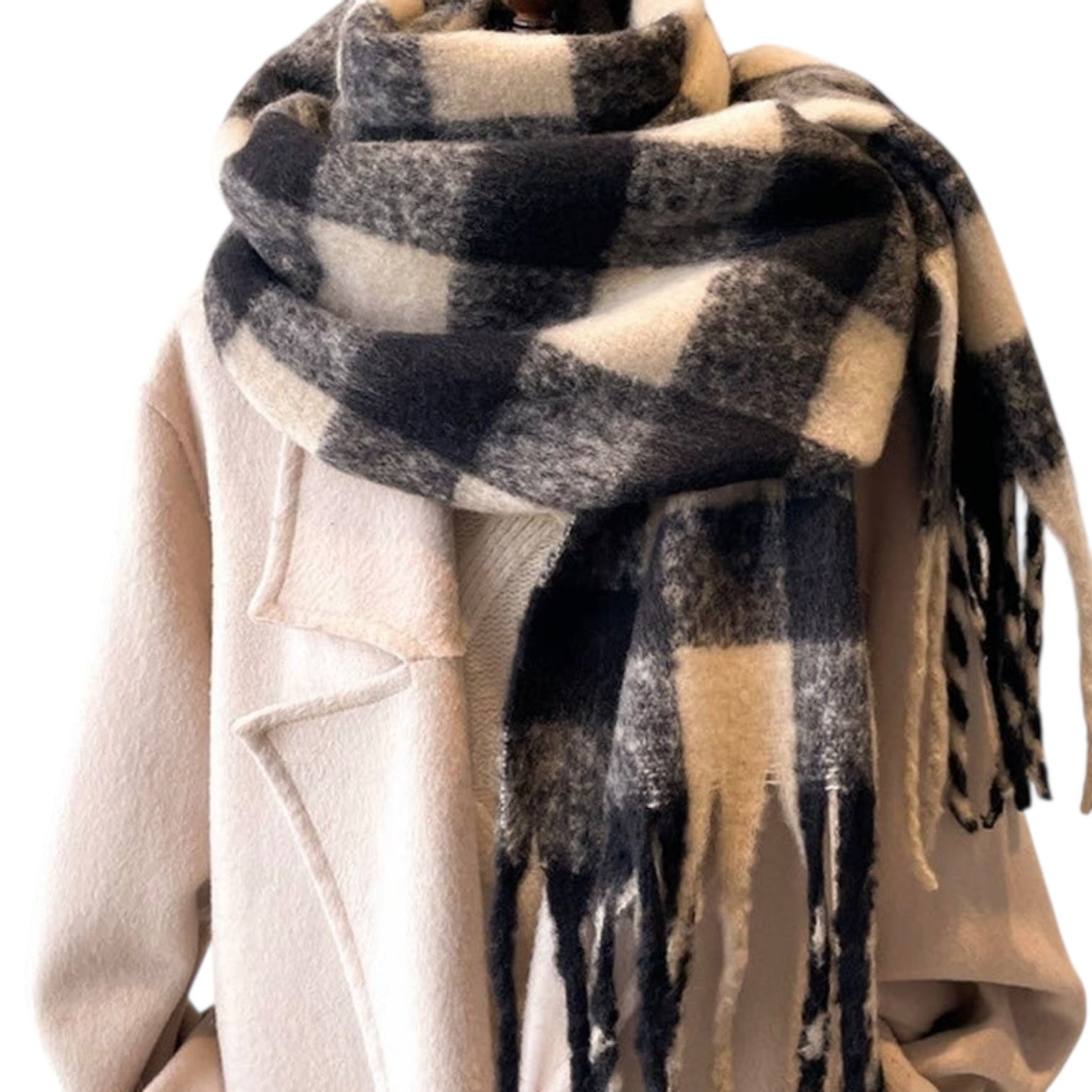 A timeless black-and-white check that goes with literally everything. This thick, ultra-soft winter scarf feels like cashmere and gives that chic, bundled-up city vibe. It’s unisex, warm, and oversized without being bulky — the perfect grab-and-go layer for everyday winter outfits. 🖤🤍❄️