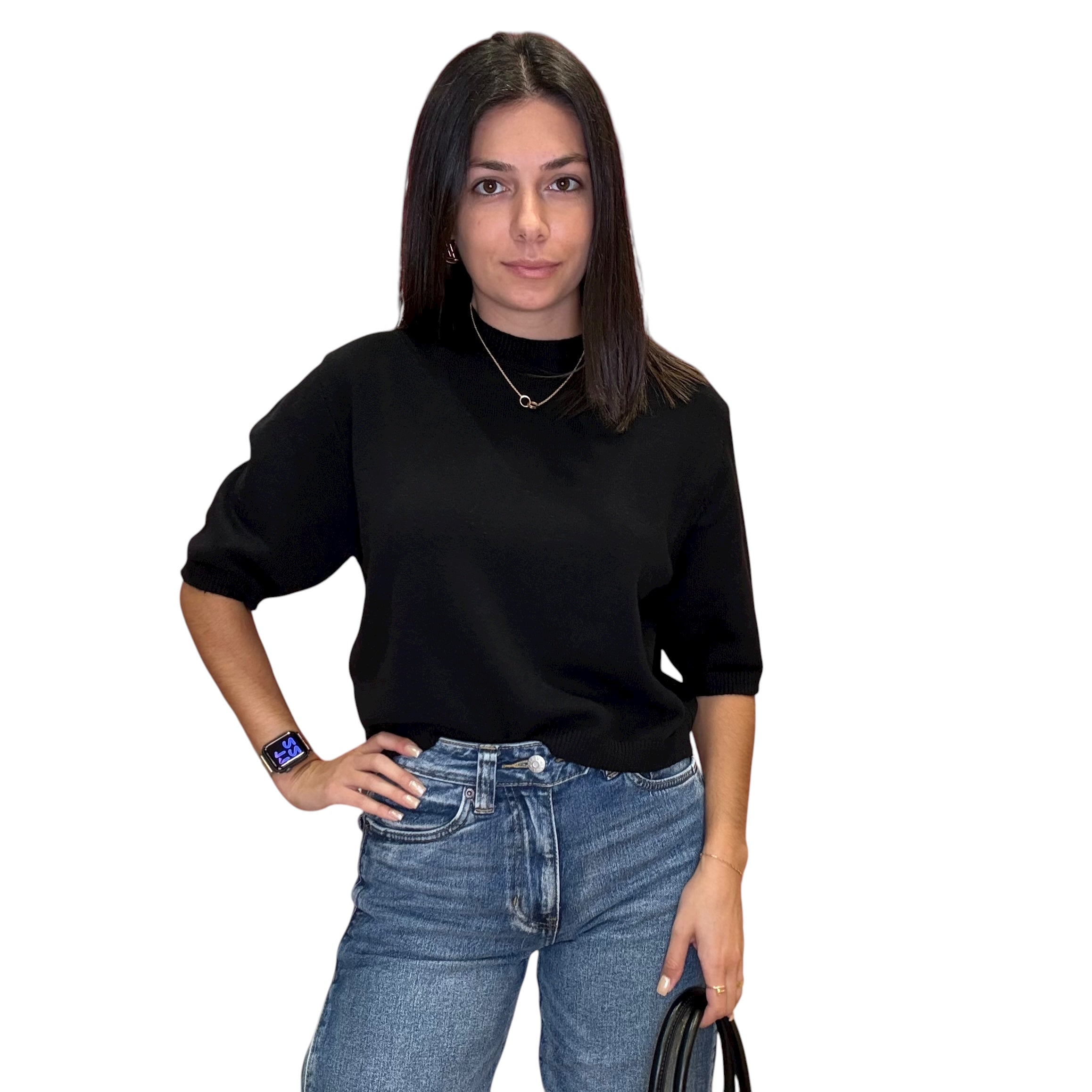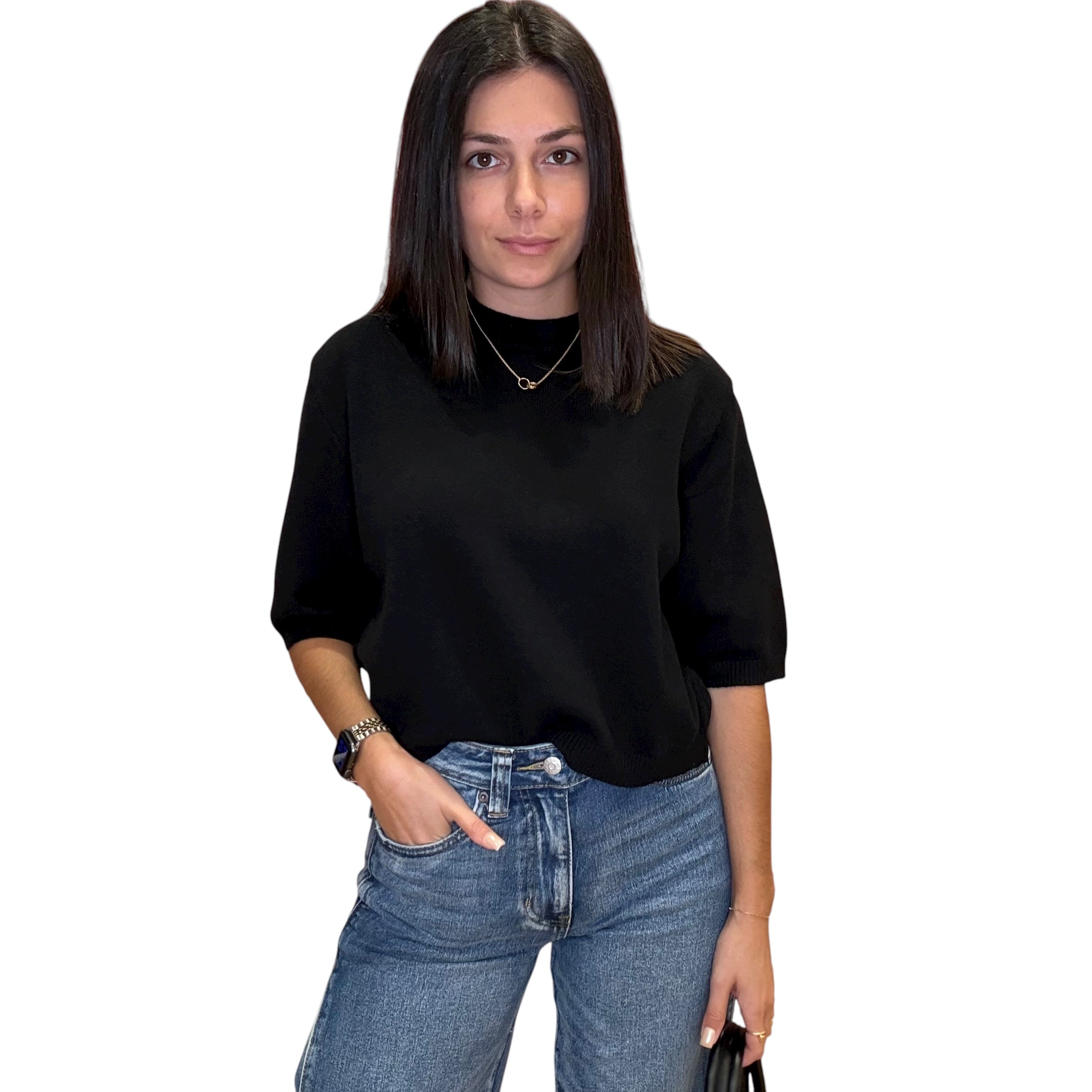 Black Knit Short Sleeve Sweater