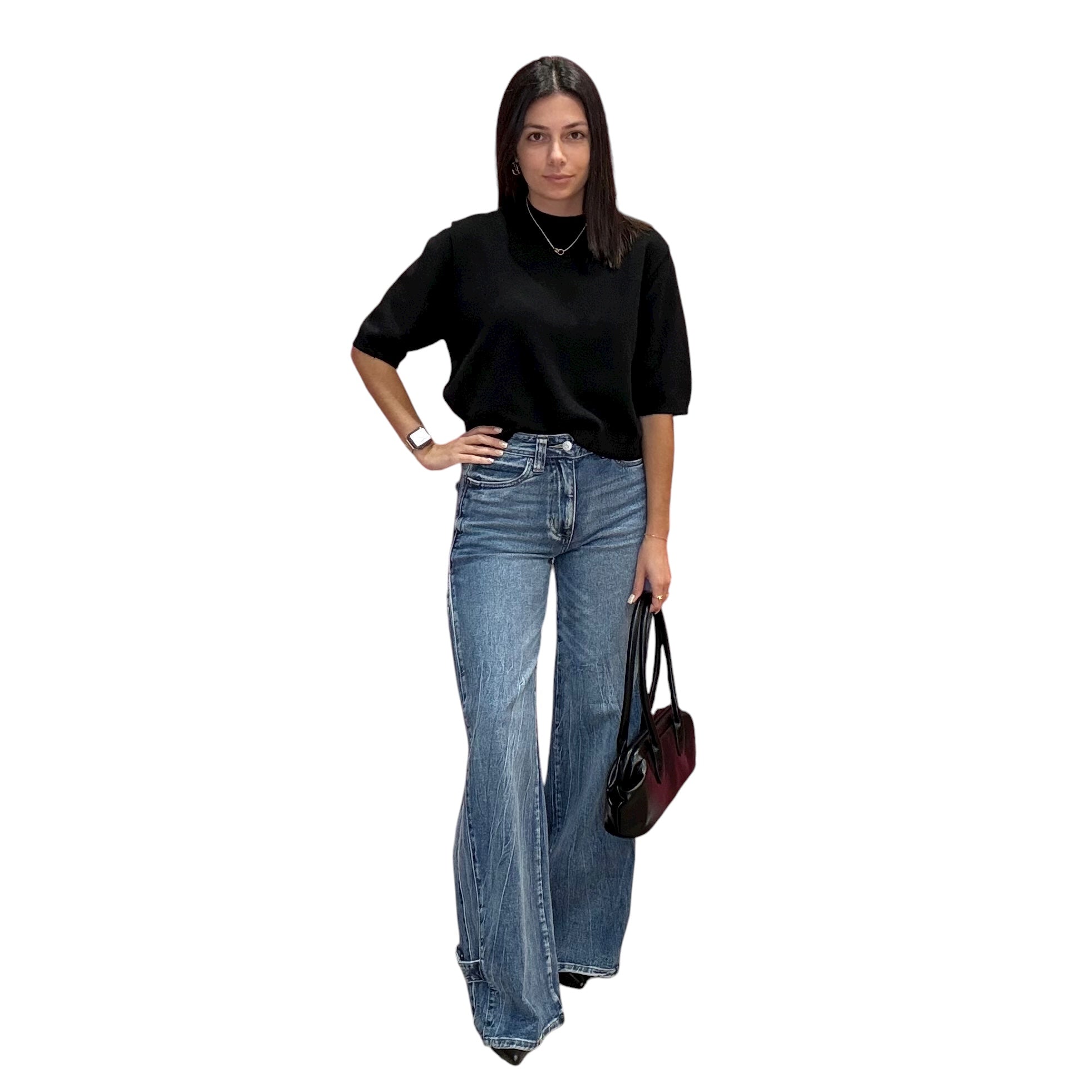 Chic and versatile, the Black Knit Short Sleeve Sweater Top is a must-have. Its sleek knit finish makes it perfect for day-to-night transitions with just a change of accessories.