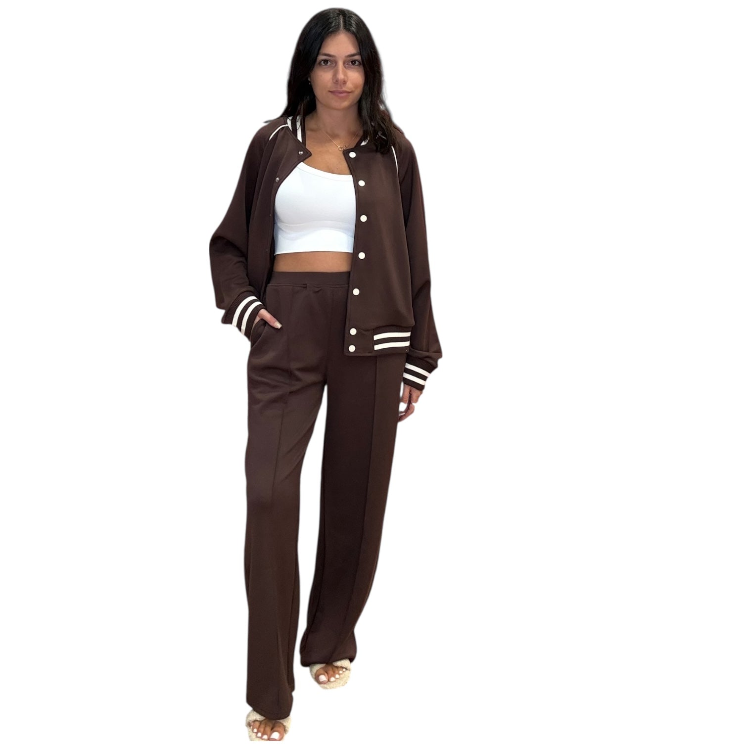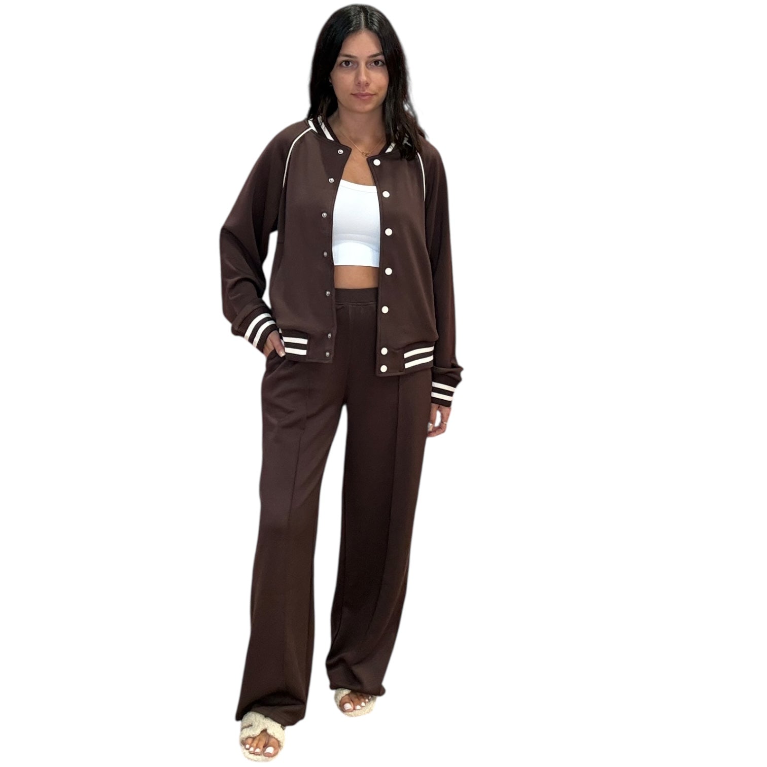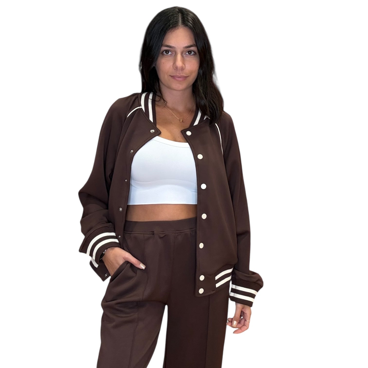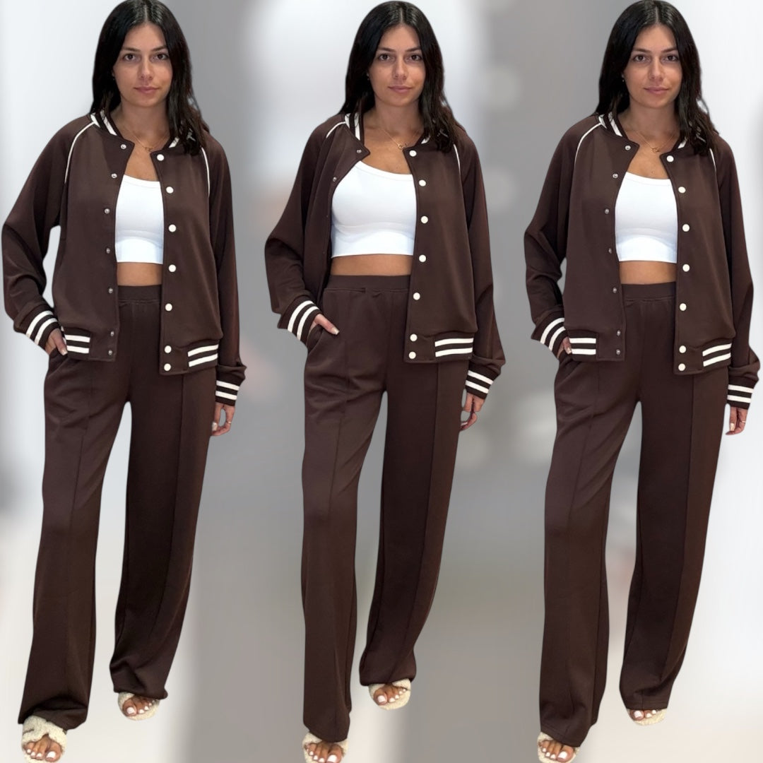 Sporty Chic Varsity Jacket – Brown