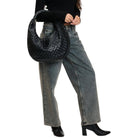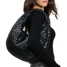 Meet your new everyday statement bag. The Black Vegan Leather Hobo Bago is crafted from buttery vegan leather with an all-over textured weave and polished gold accents. The slouchy-yet-structured shape gives that effortless “I just threw this on” energy, while the spacious interior easily fits your phone, wallet, and makeup essentials. Designed for work, travel, or nights out — this bag brings quiet luxury to every outfit.