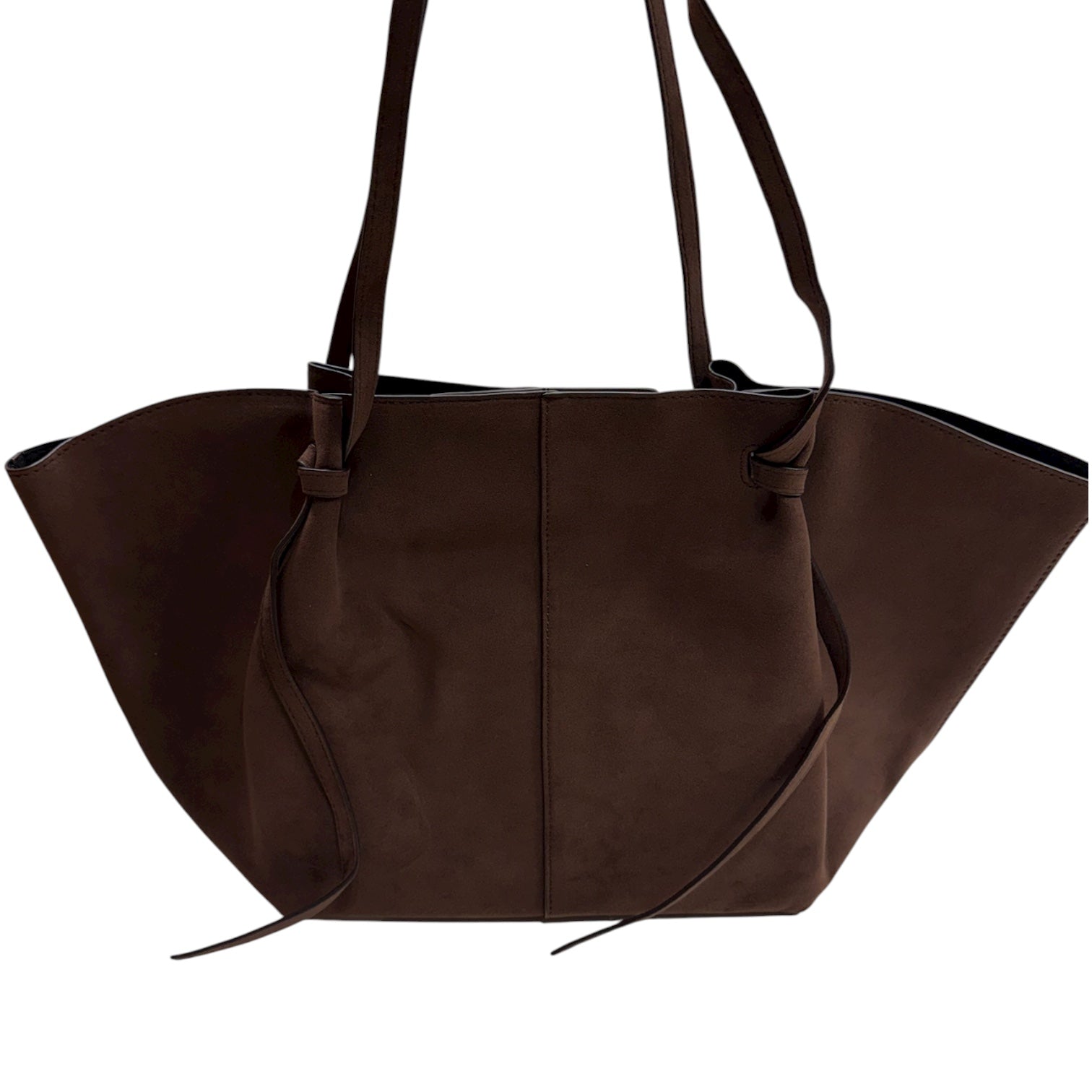 The oversized tote every busy girl needs. Crafted in soft matte suede with knotted handles, this roomy carryall holds your laptop, notebooks, and everything in between. Earthy coffee brown makes it timeless yet modern, perfect for weekday commutes or chic weekend escapes.