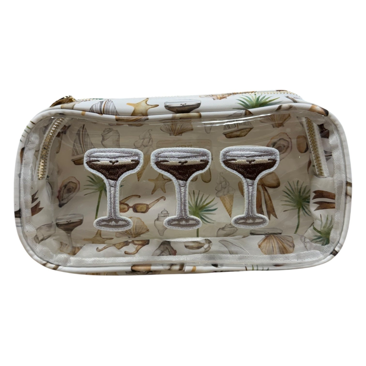 Clear bag, cocktail vibes 🍸 This neutral coastal clear bag features chic espresso martini artwork and is perfect for beach days, poolside hangs, and summer events. Spacious enough for sunscreen, sunnies, and all your essentials while still feeling fun and stylish ☀️