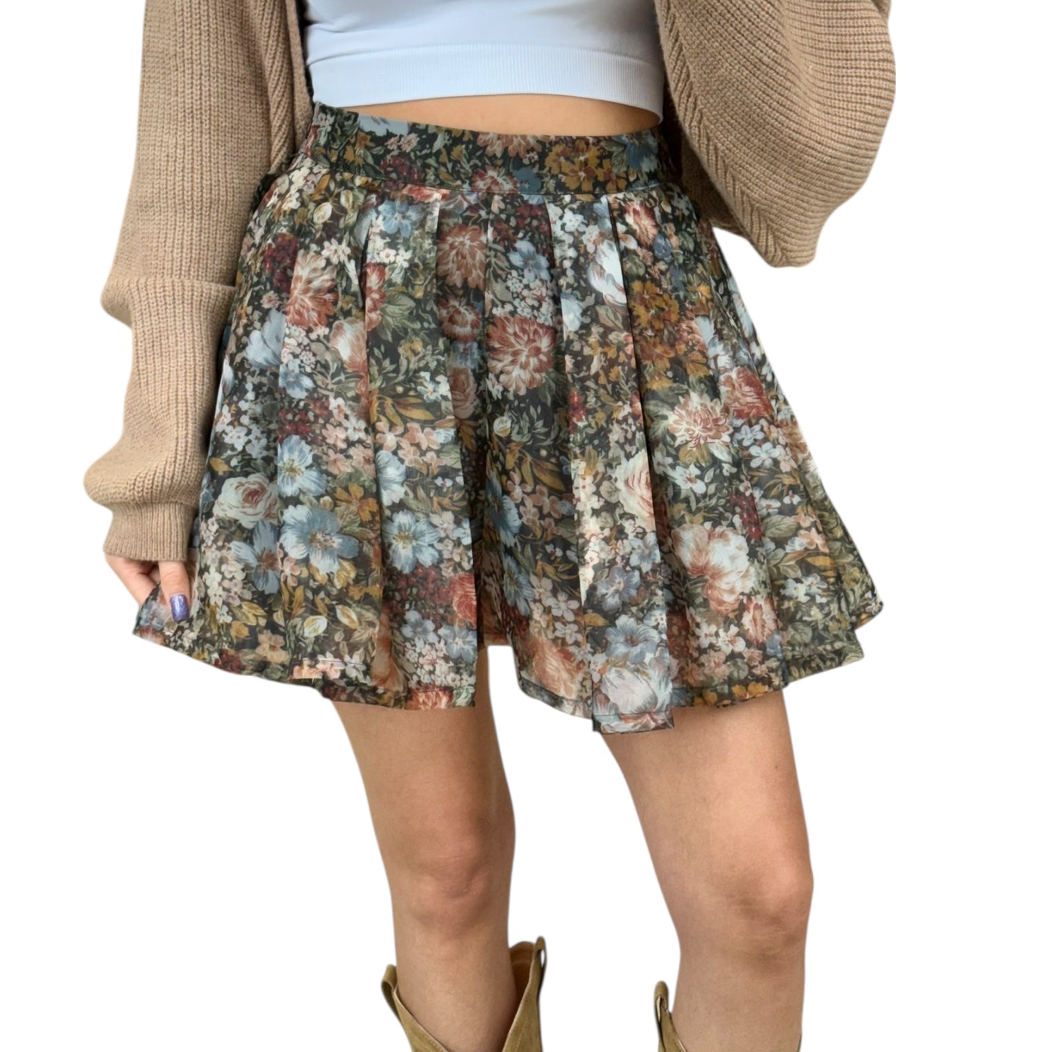 Floral Pleated Organza Skort