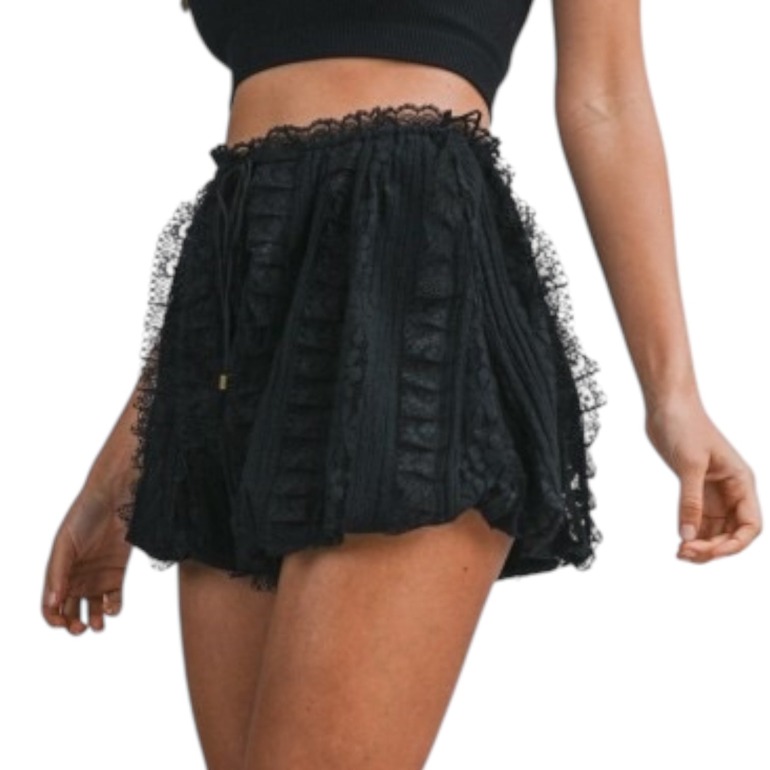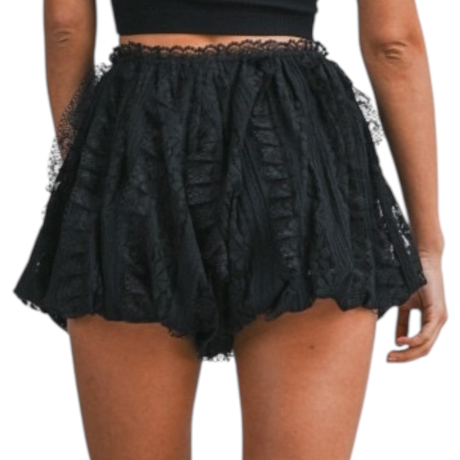 Soft, feminine, and effortlessly chic — these lace-trim bubble hem shorts are made for warm days and easy styling. Designed with delicate floral lace detailing, a softly structured bubble hem, and a comfortable elastic waistband with adjustable drawstring for the perfect fit. Fully lined so you can wear them confidently from brunch to sunset cocktails. Available in classic black and dreamy off-white for endless outfit options 🤍🖤