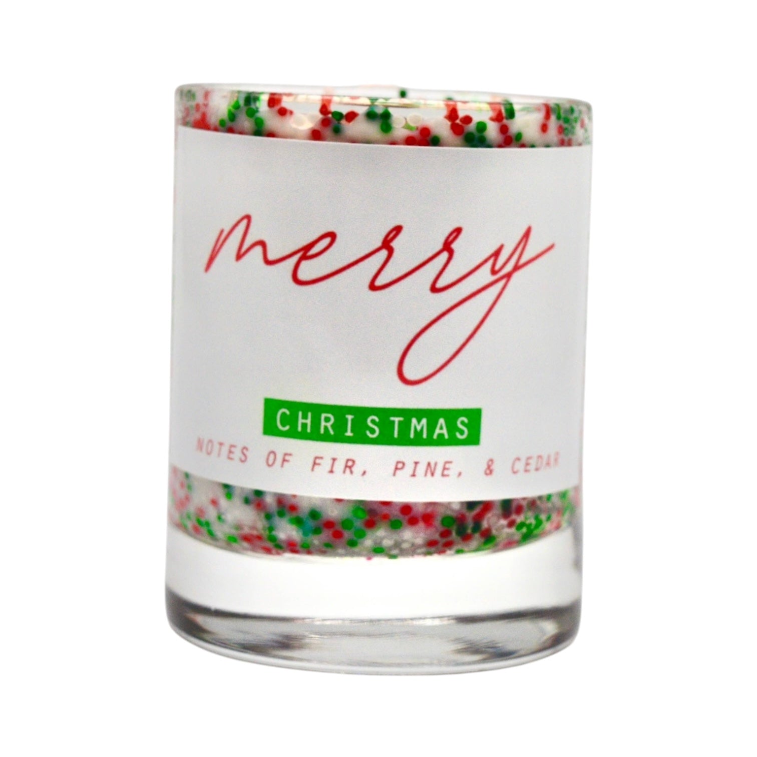 Bring the magic of the holidays home with our Mini Merry Christmas Candle — a best-selling favorite that captures everything you love about Christmas morning. Hand-poured in small batches, this 3oz candle comes in our signature sprinkled glass jar, adding a cheerful pop of festive color to any room or gift display.