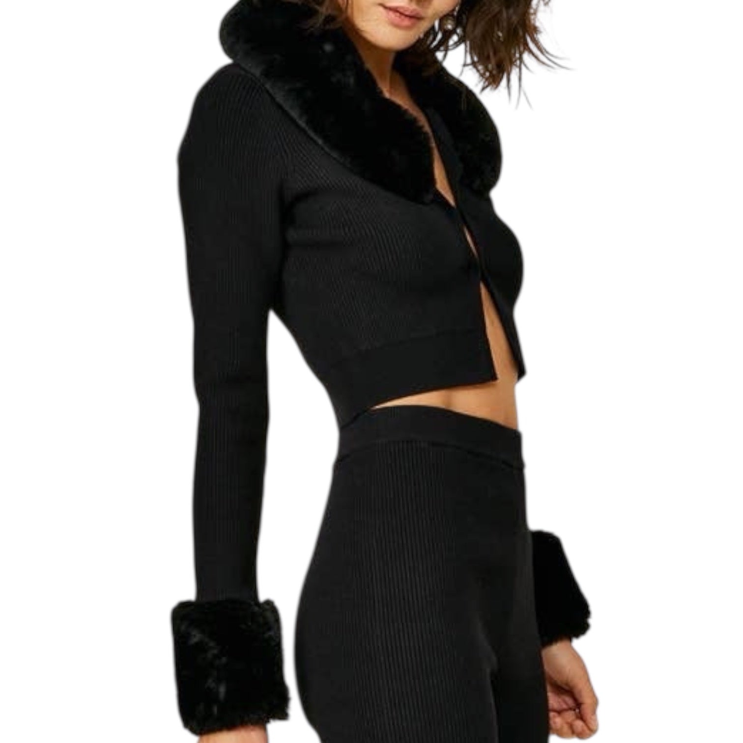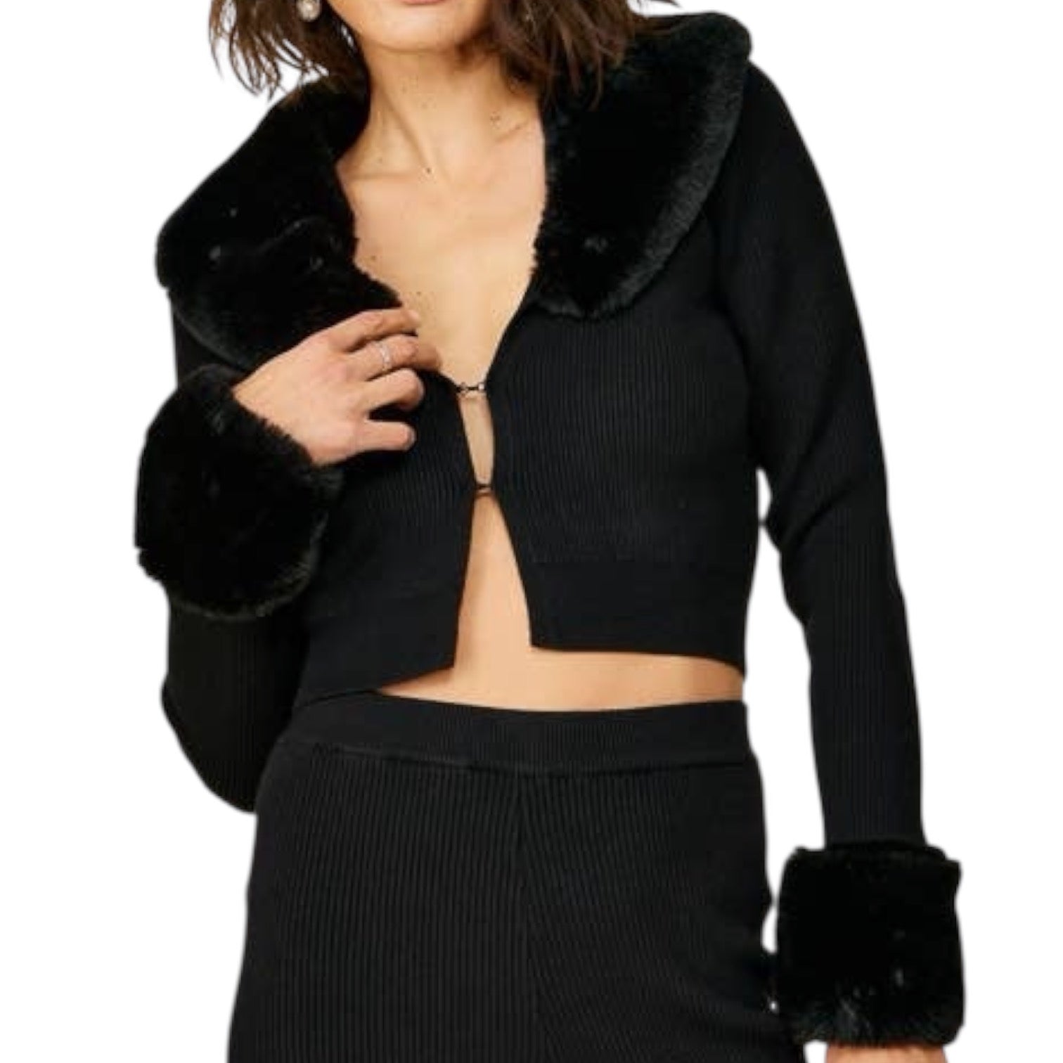 Sleek, minimal, and quietly cool 🖤 This cropped black cardigan features a fitted silhouette with a soft knit feel that hugs just right. Designed with a flirty hook-and-eye front closure to be worn buttoned up or slightly open, it’s one of those pieces that instantly pulls a look together without trying too hard. Modern, feminine, and endlessly versatile — a true closet staple you’ll reach for again and again ✨