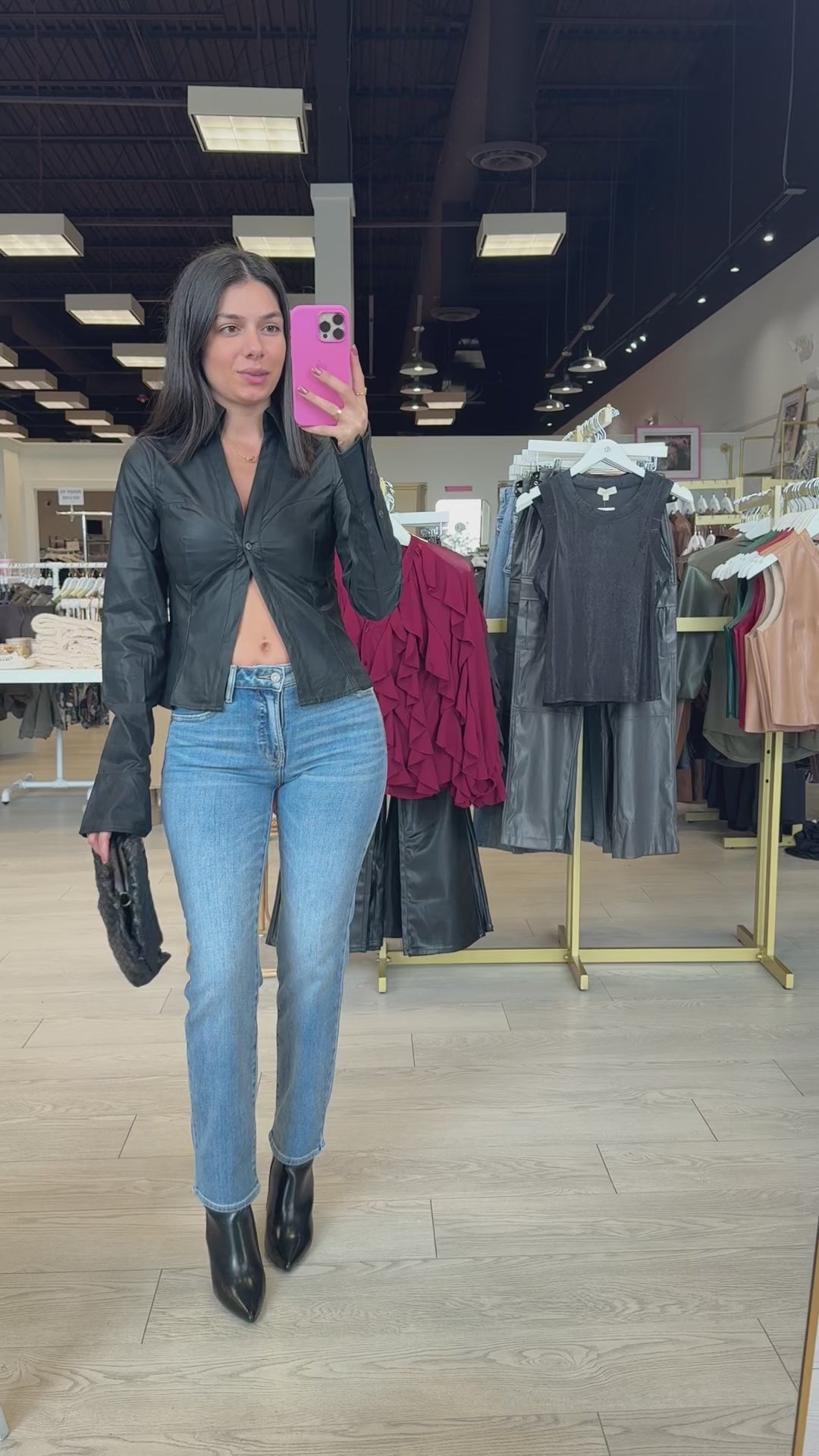 Classic, bold, and endlessly versatile — this black PU button-down brings major edge to any outfit. Perfect layered or worn solo for that polished biker-chic vibe.
