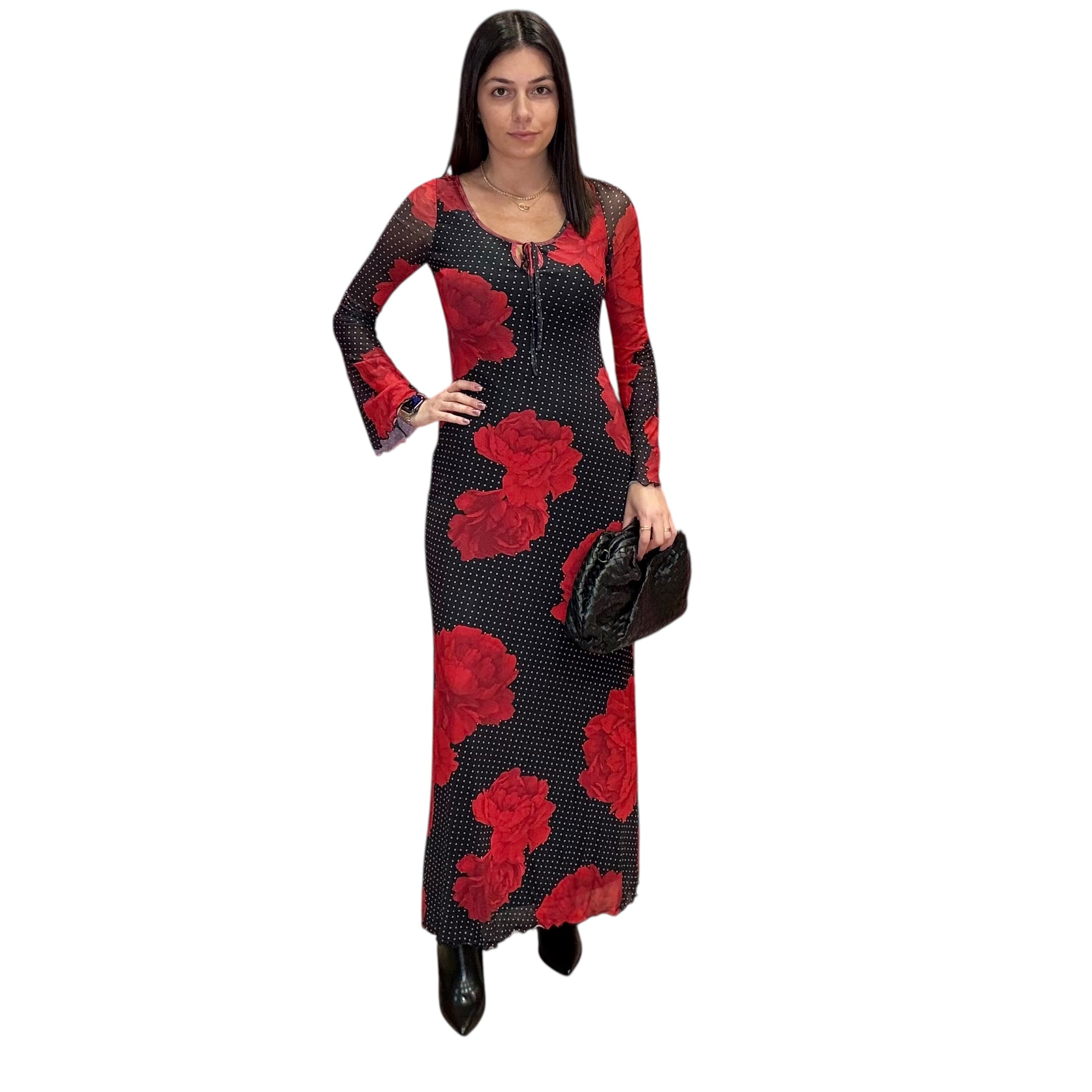 Black Floral Polka Dot Maxi Dress