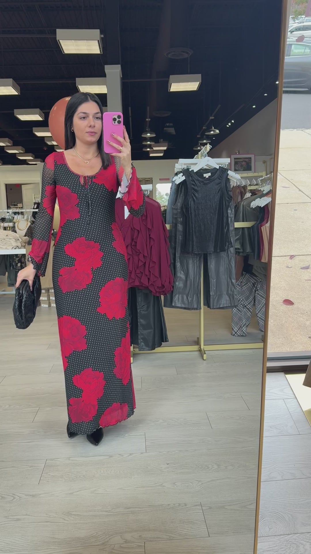 The Black Polka Dot Maxi Dress is whimsical meets chic ✨ With a dreamy mix of polka dots and florals, this maxi features a self-tie detail at the front and a flattering silhouette that flows with every step. Perfect for dinner parties or date night.