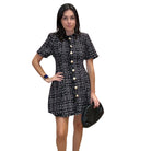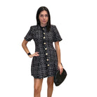 Classic meets modern 🖤 This short sleeve tweed mini dress features a flattering fit-and-flare cut, frayed hem trim, and luxe gold button details—an easy yes for every occasion.