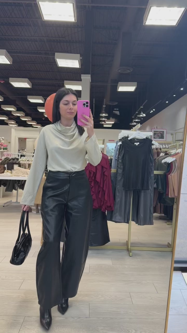 These aren’t your average leather pants. Designed with a loose, fluid fit that moves with you, the Jetset Pants bring high-end style to everyday wear. Made from soft, buttery vegan leather with a sleek drape and subtle sheen, they’re the ultimate blend of comfort and cool.