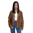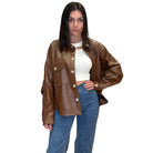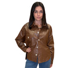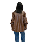 Brown Button-Down Faux Leather Top