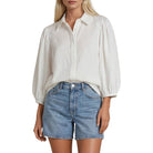 This white balloon sleeve denim blouse is the definition of effortless polish 🤍✨ Designed with soft imported denim, this lightweight top features voluminous puff sleeves, a relaxed silhouette, and a classic lapel collar for that timeless-but-modern feel. The structured collar balances the feminine sleeves, making it the perfect elevated basic for spring, summer, and year-round layering.