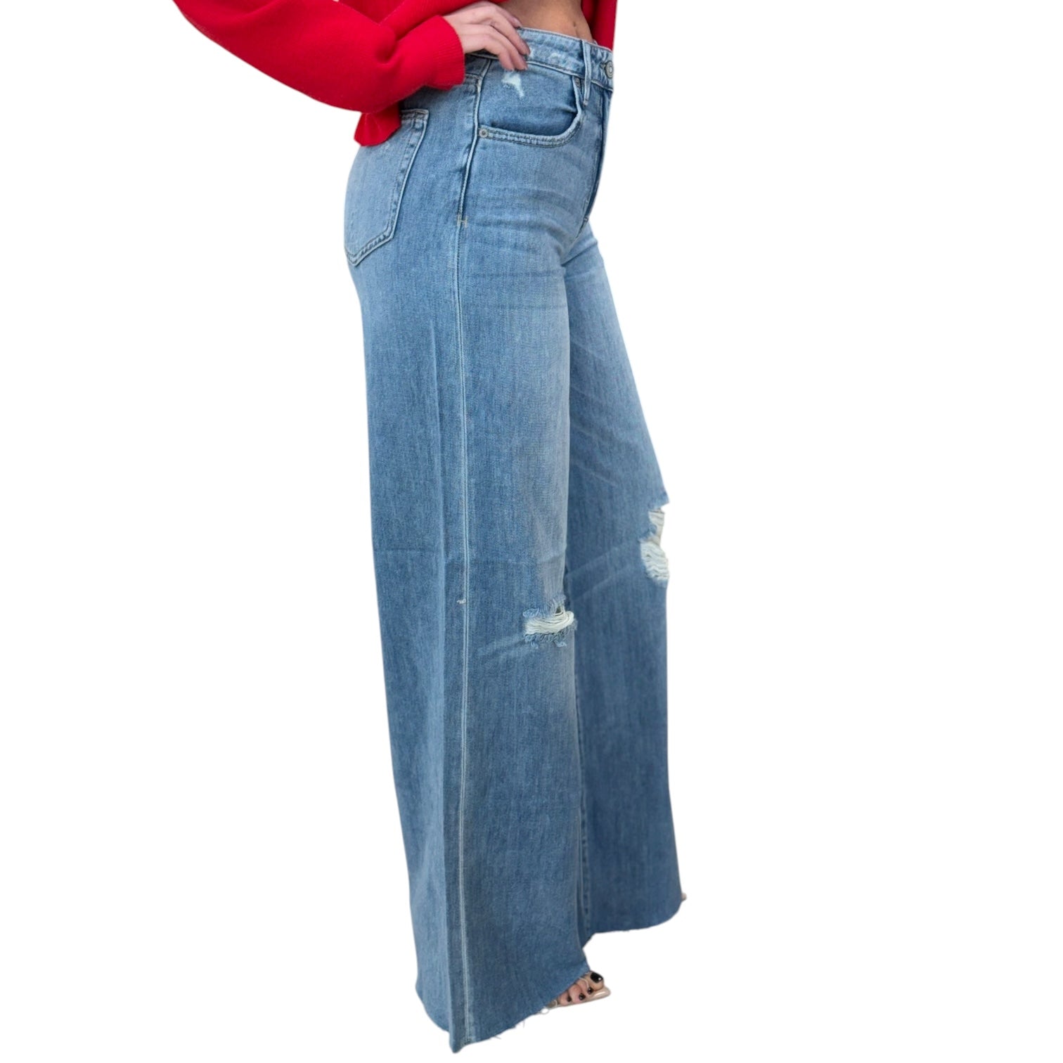 The Cloud Soft Distressed Wide Leg Jean is your new go-to for that effortless, relaxed vibe. Designed in a medium wash with a 33” inseam, these jeans feature a super soft blend with just the right drape. The roomy leg and higher rise make them perfect for cozy fall days or dressed-up nights out.