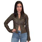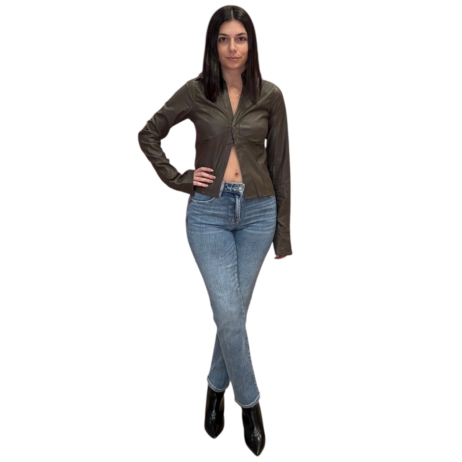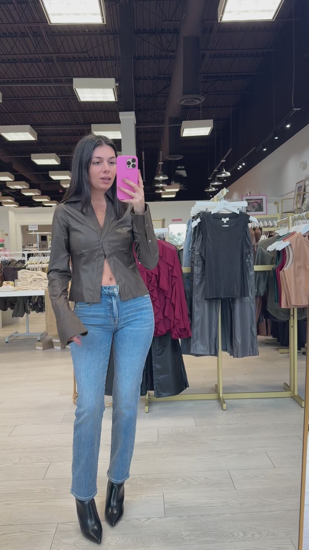 Meet your fall wardrobe MVP. This rich coffee-bean tone top features a center-front button closure and sleek long sleeves, giving major model-off-duty energy.