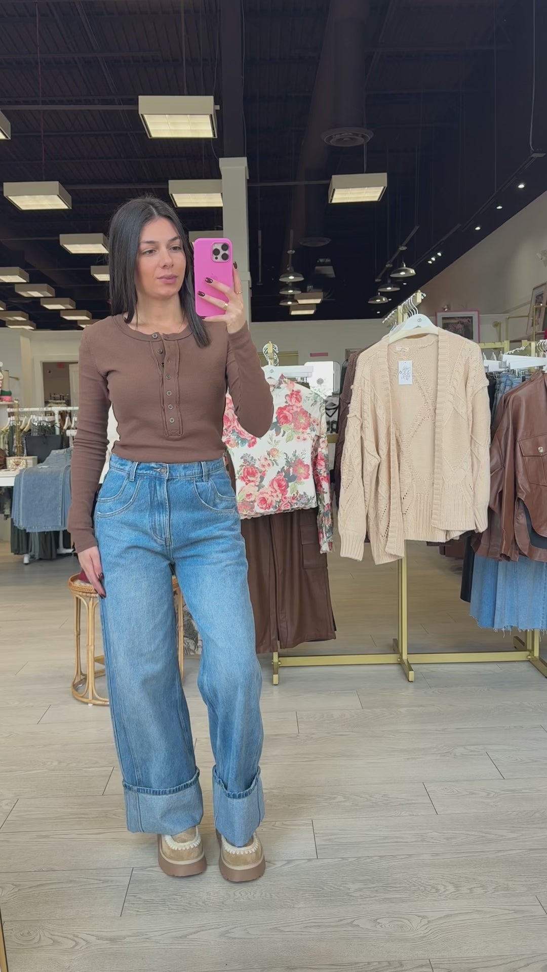 Meet your new wear-on-repeat top 🤎 This ribbed long sleeve Henley blends comfort and style with its soft knit, flattering stretch, and classic button-up neckline. Perfect for layering or wearing solo.