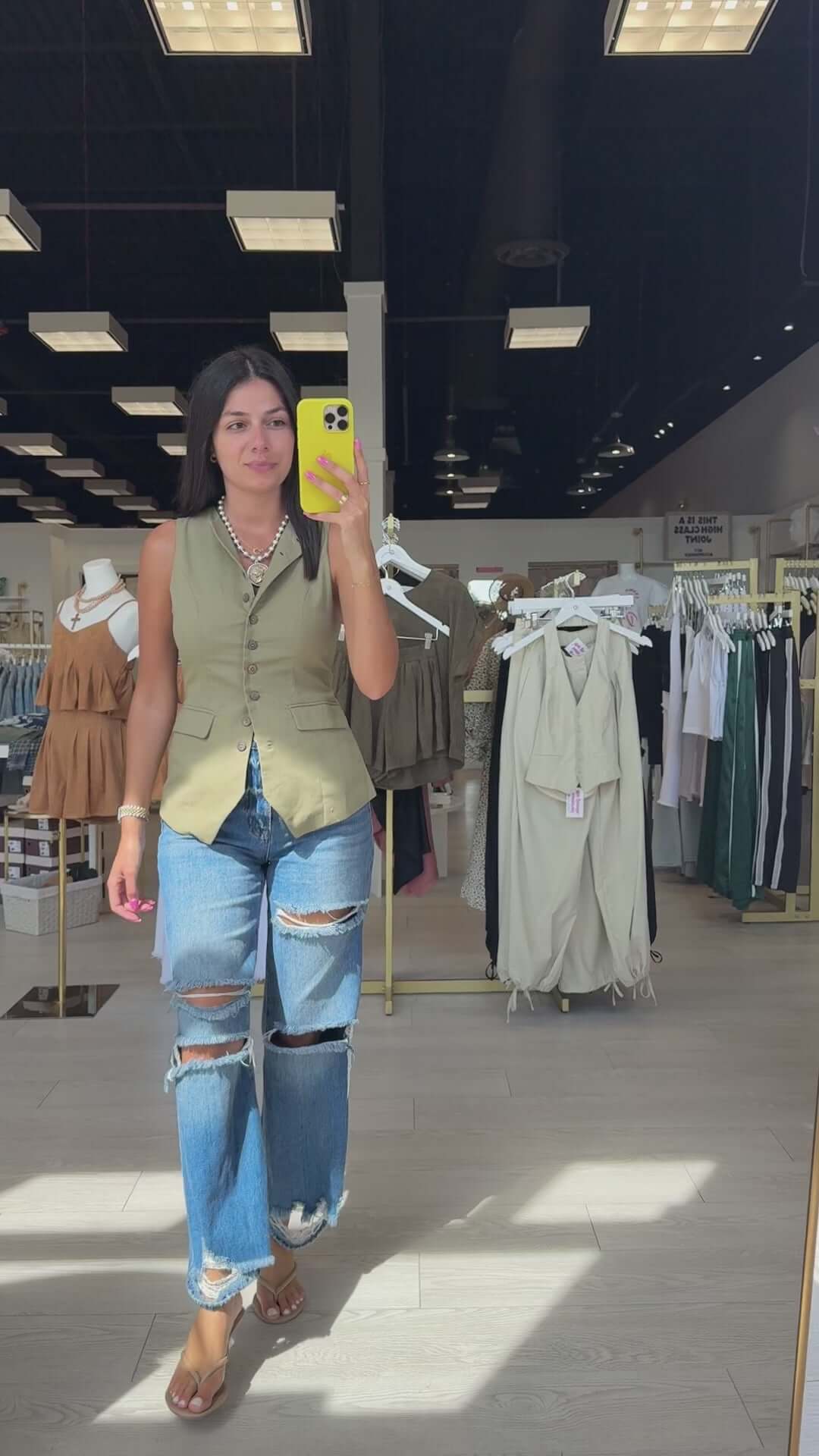 Style with Destructed High Rise Straight Jeans