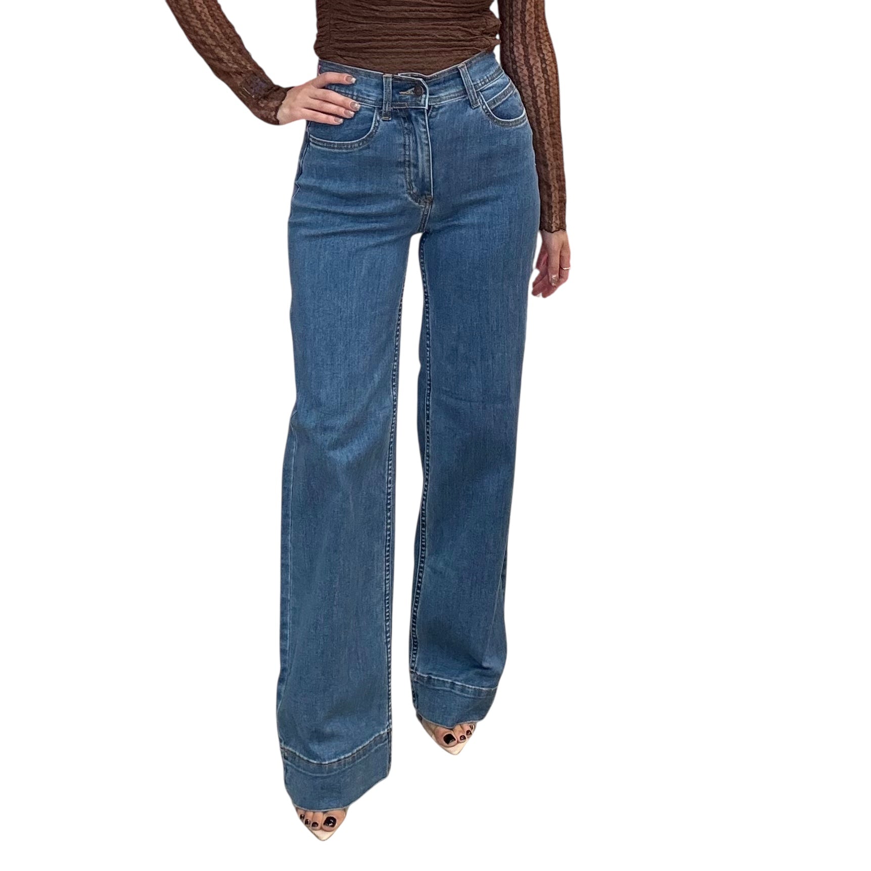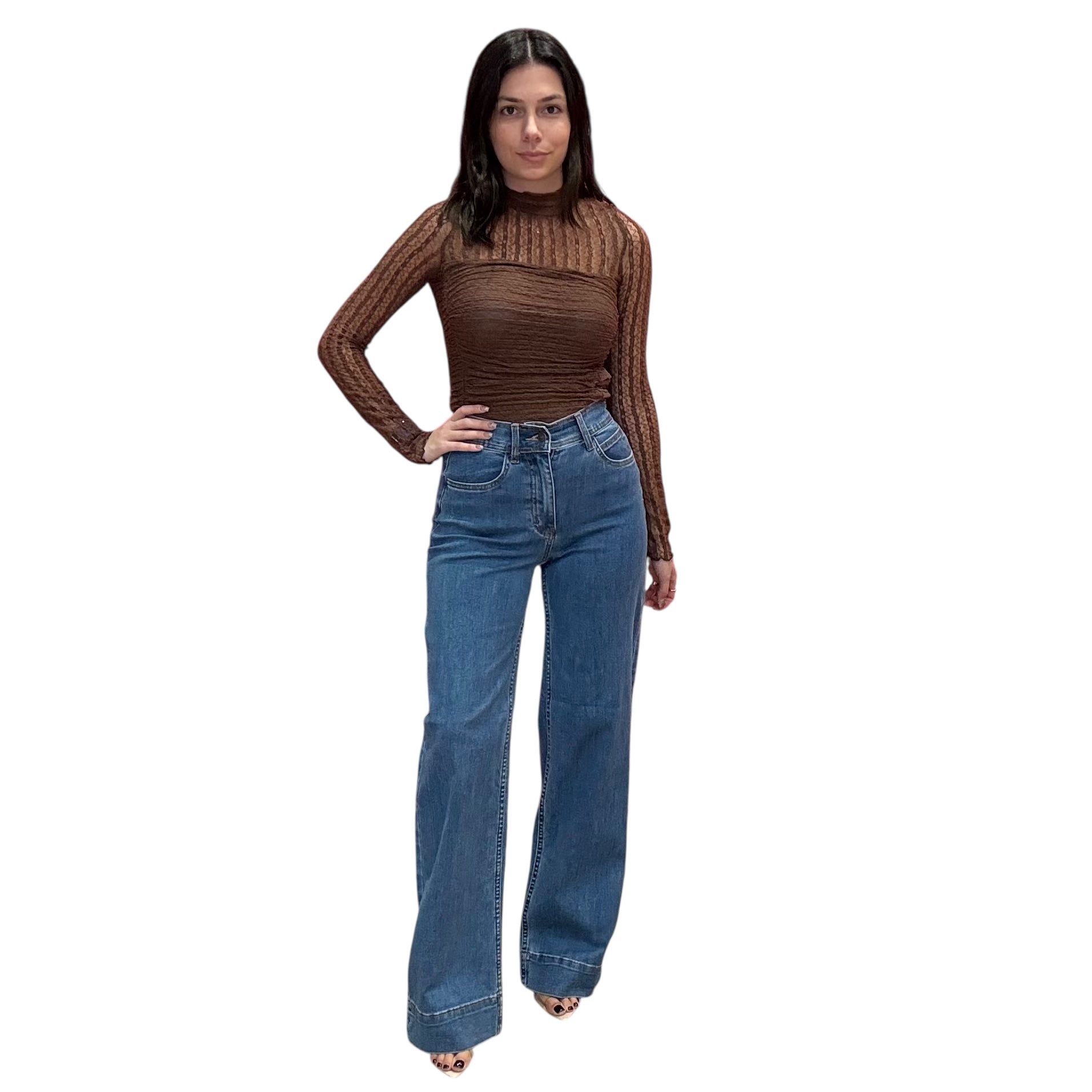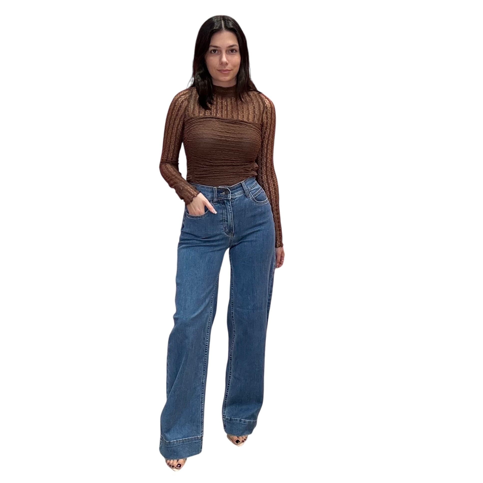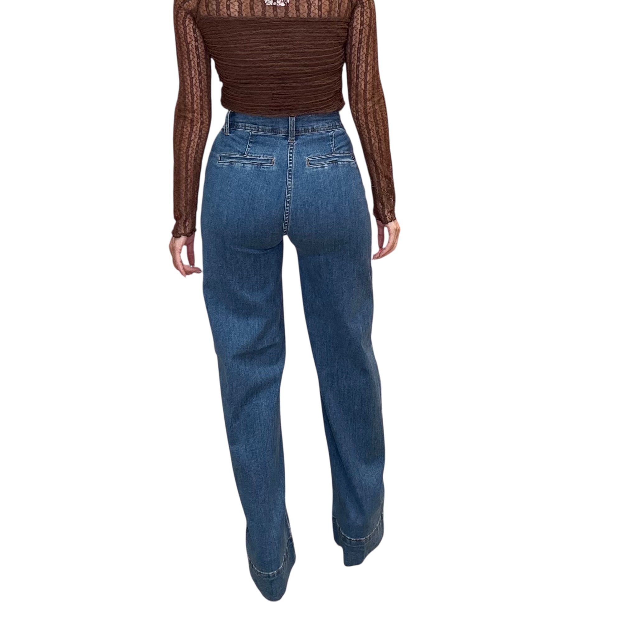 A timeless denim moment. These medium stone wash jeans feature a high rise and wide-leg silhouette that elongates your frame. Soft, structured, and endlessly wearable — they’re your new go-to denim.