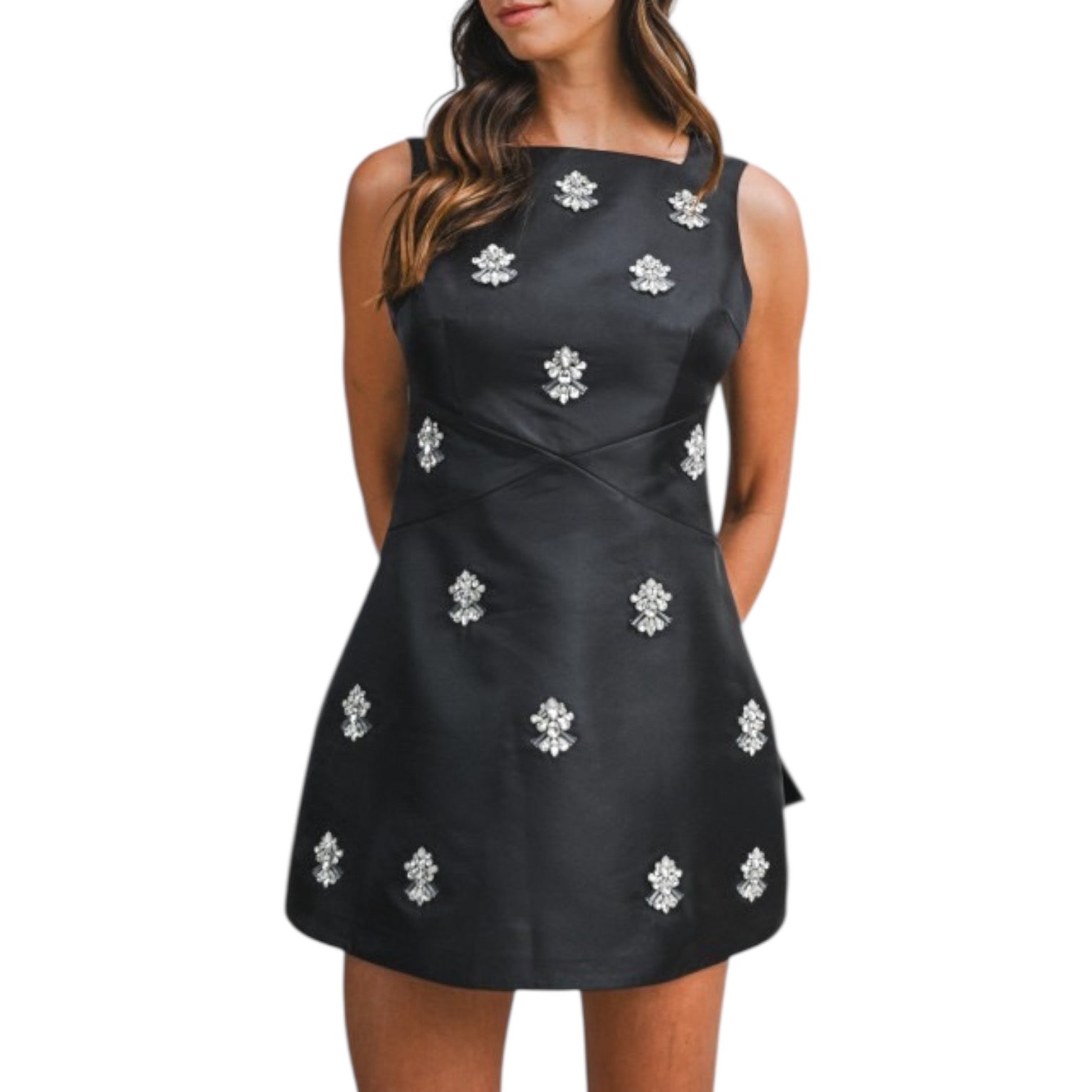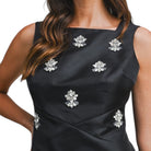 Shine without even trying ✨ The Midnight Jewel Square-Neck Mini Dress is that effortlessly chic little black dress you reach for when you want to feel stunning with zero stress. Designed with sparkling jewel embellishments, a sleek square neckline, and a flattering A-line silhouette, this mini brings all the glam without sacrificing comfort. The open V-back with a self-tie detail adds a sultry touch, while the invisible side zipper keeps the fit smooth and seamless. Fully lined for that luxe feel you love. Non-returnable.