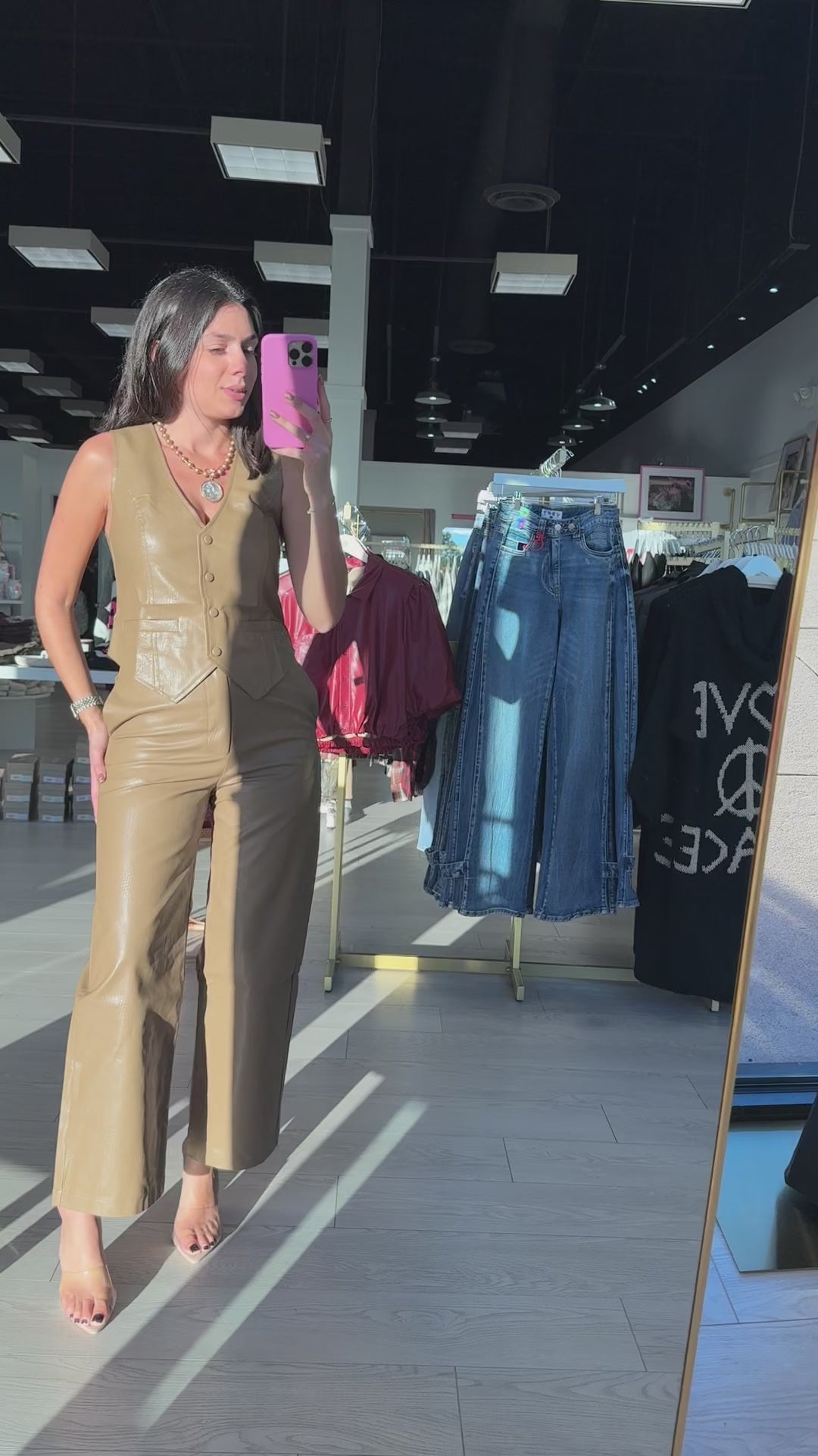 Rich textures, tailored lines, and that quiet-luxury feel we’re all craving. This faux leather vest + wide-leg pant set serves serious old money vibes — structured, sophisticated, and sexy without trying too hard. The textured finish adds depth and edge to your fall wardrobe.