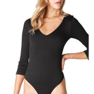 Meet your new go-to base layer ✨ This ribbed, seamless bodysuit features a flattering v-neckline and 3/4 sleeves that hug you in all the right places. Made with a luxe, stretchy fabric blend for a smooth, sculpted fit. Perfect for layering under blazers, cardigans, or high-waist denim — this piece gives major “effortless chic” energy all year round.