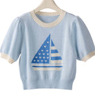 Sweet Escape Sailboat Puff Sleeve Knit Top – Blue