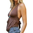 Retro-inspired and effortlessly cool 🤎 The Vintage Ring Halter Top brings major statement energy. Designed with a plunging cowl neckline and gold beaded ring detail, this halter top creates a flattering draped silhouette with a chic vintage feel. Perfect for nights out or vacation dinners.