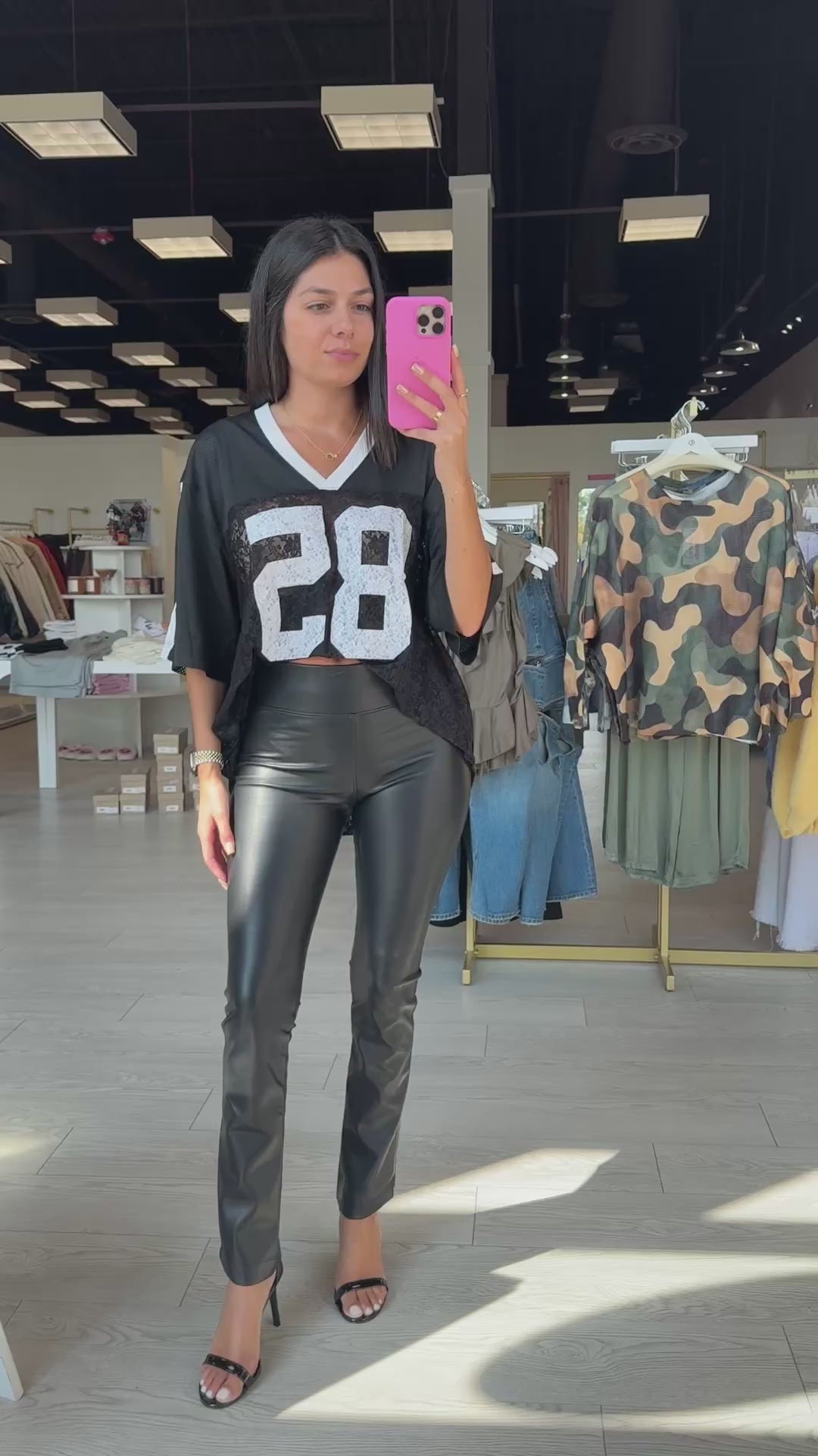 Athletic meets feminine. This oversized jersey tee brings varsity vibes with a flirty lace trim for the perfect game day-to-girls night fit.