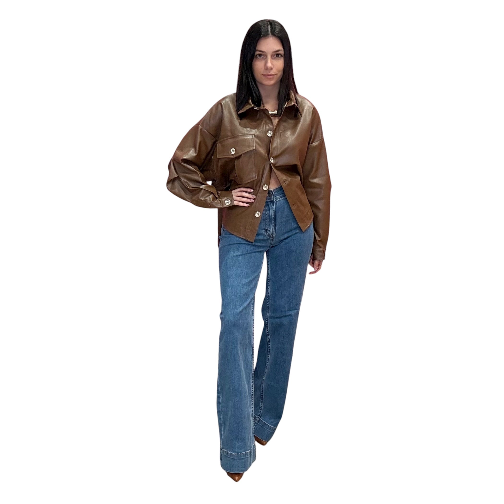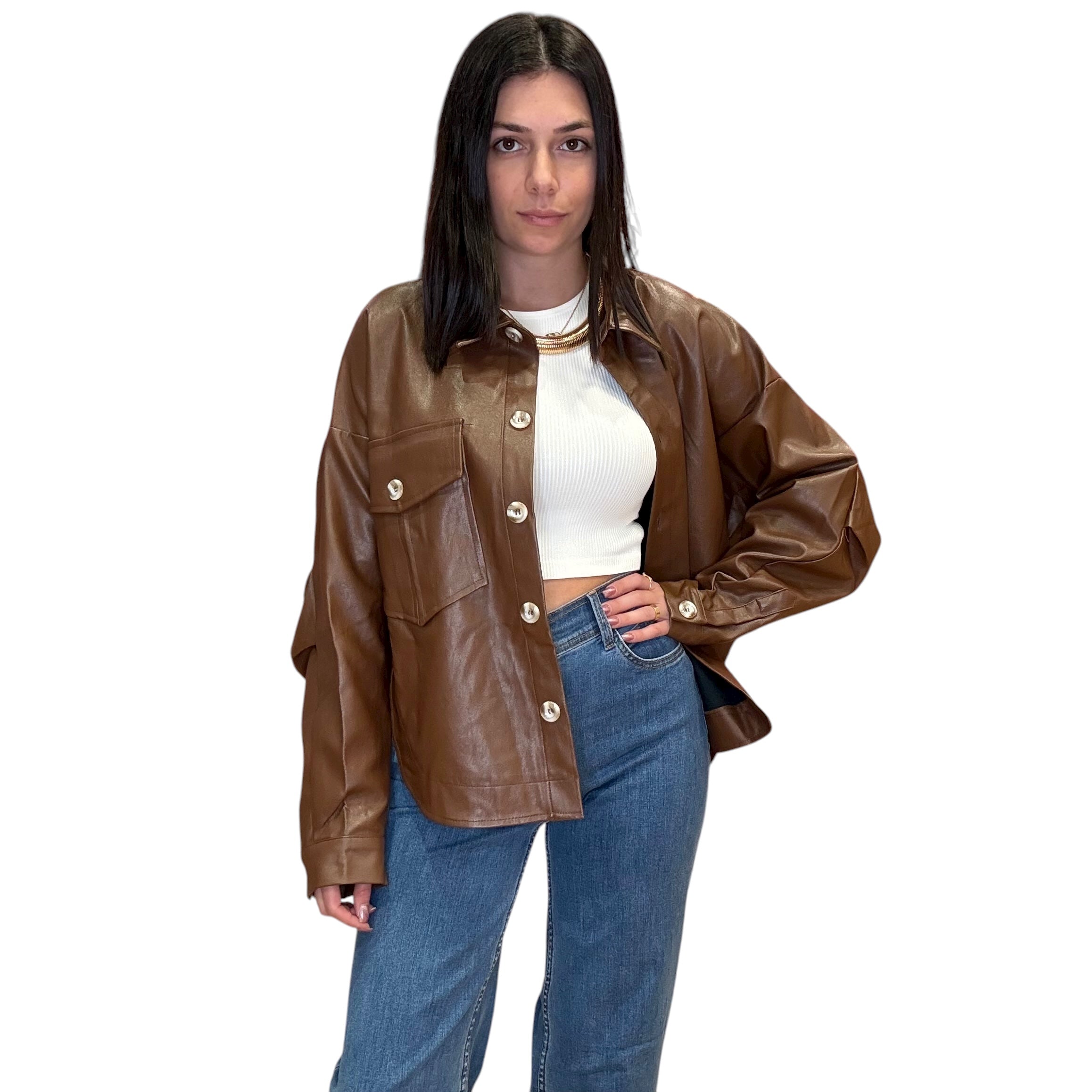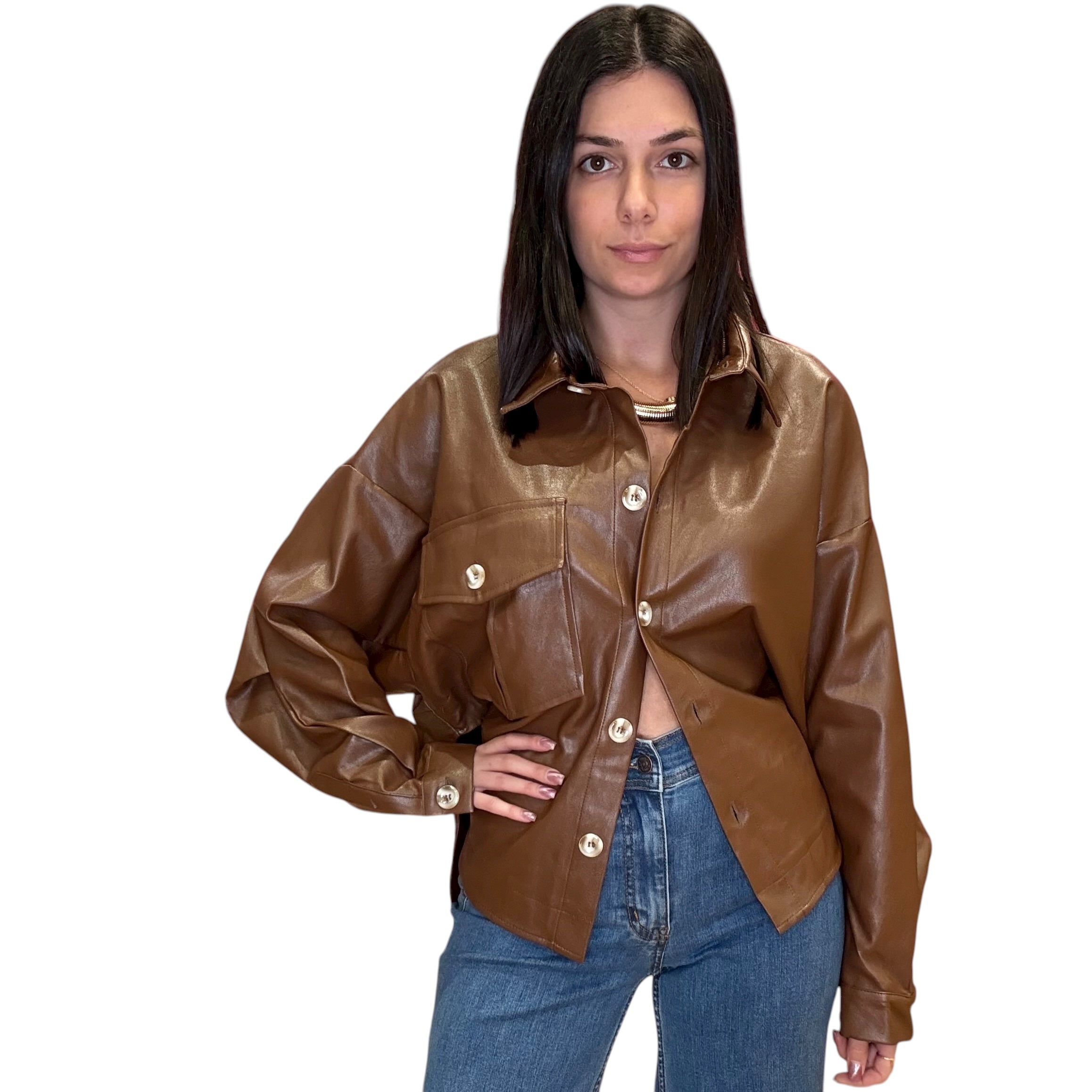 This luxe faux leather button-down brings major power-move energy. With a structured silhouette, long sleeves, and soft sheen, it’s your new go-to for day-to-night glam.