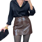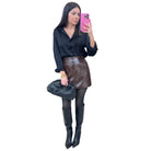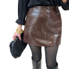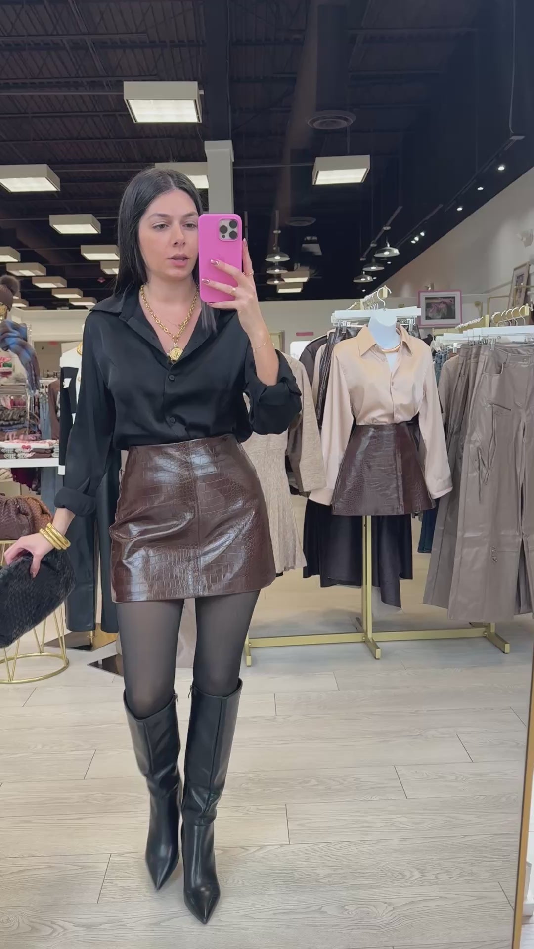 Rich and bold with that buttery texture — this chocolate faux leather mini skirt is a closet statement. The crocodile-embossed design and sleek high waist give it an ultra-flattering shape. Fully lined with an exposed back zipper for an effortless pull-on-and-go vibe.