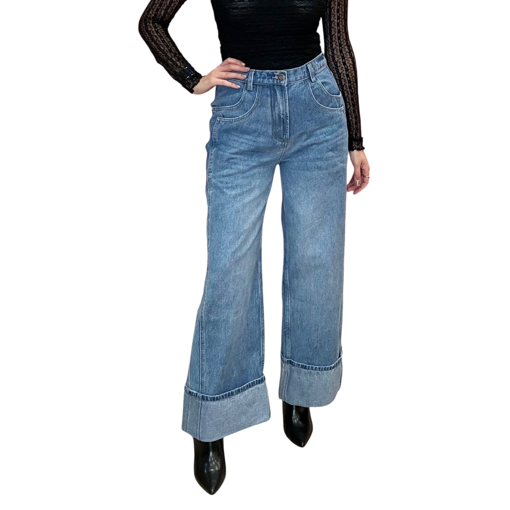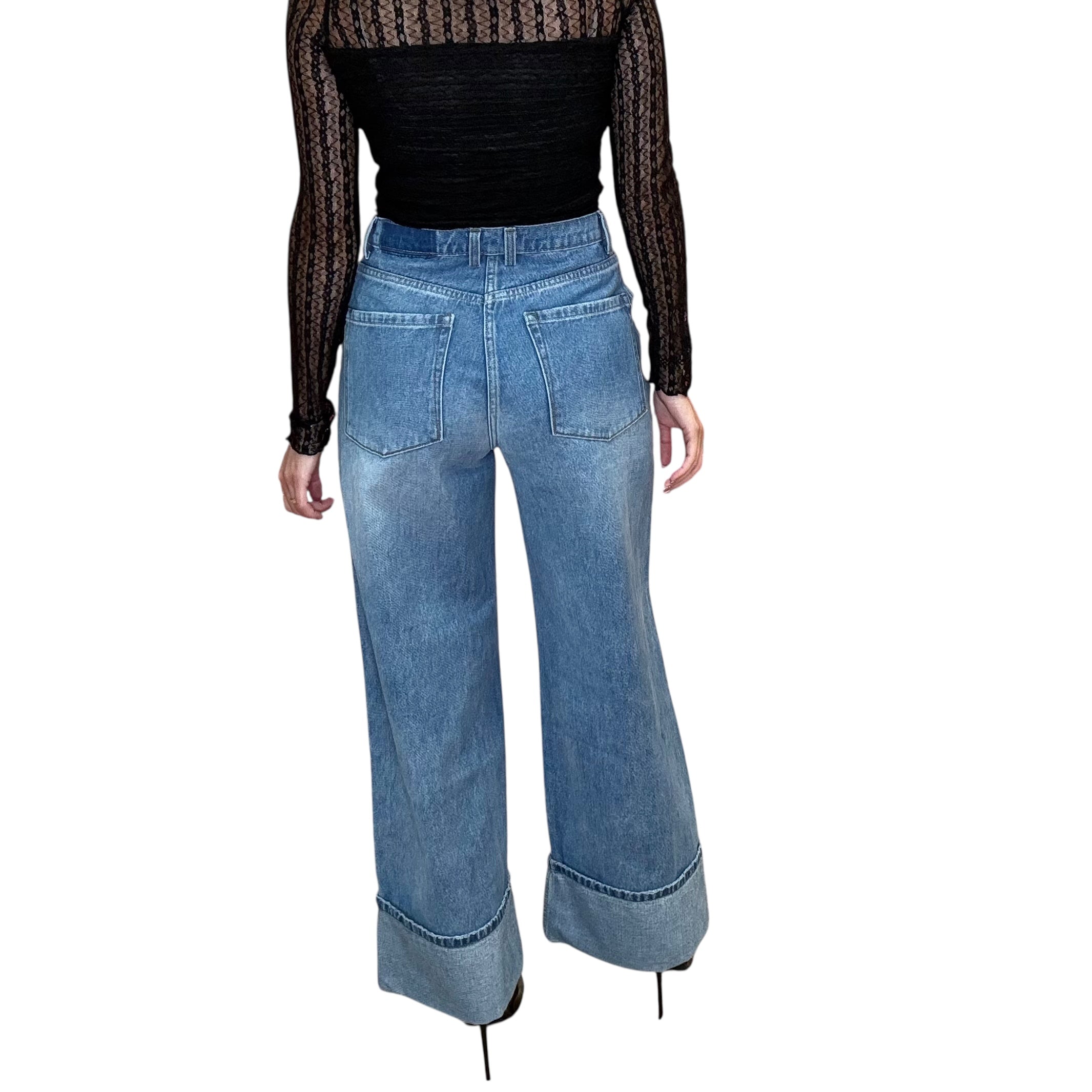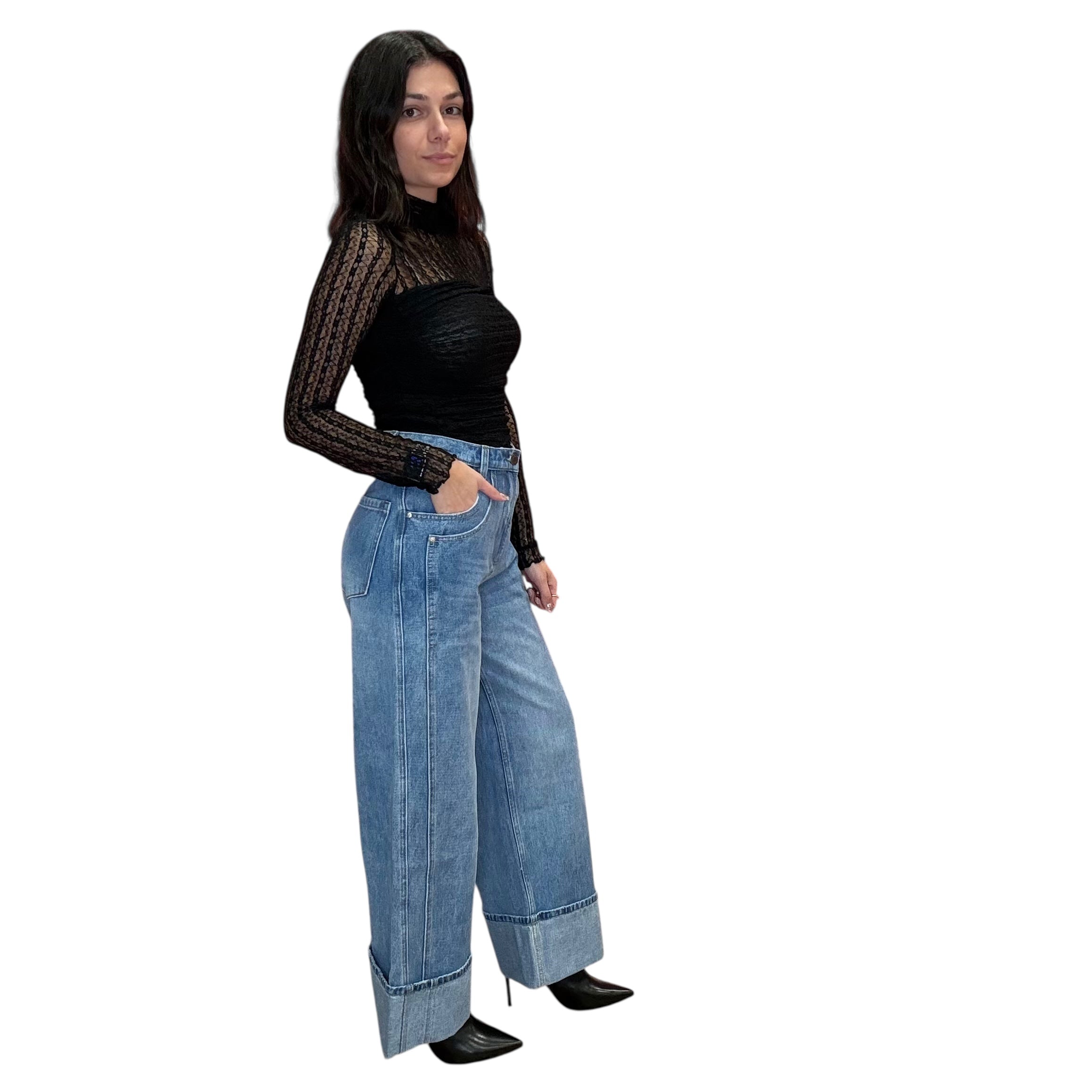 Meet your new favorite statement jean 💙 The Drift Blue Cuffed Wide Leg Denim is crafted from 100% cotton for that perfect structured yet lived-in feel. Designed with exaggerated cuffs, a relaxed straight leg, and a softly faded wash that gives effortless vintage energy. The five-pocket silhouette and zip-front closure make them as functional as they are flattering — the kind of denim that turns “running errands” into a whole vibe.