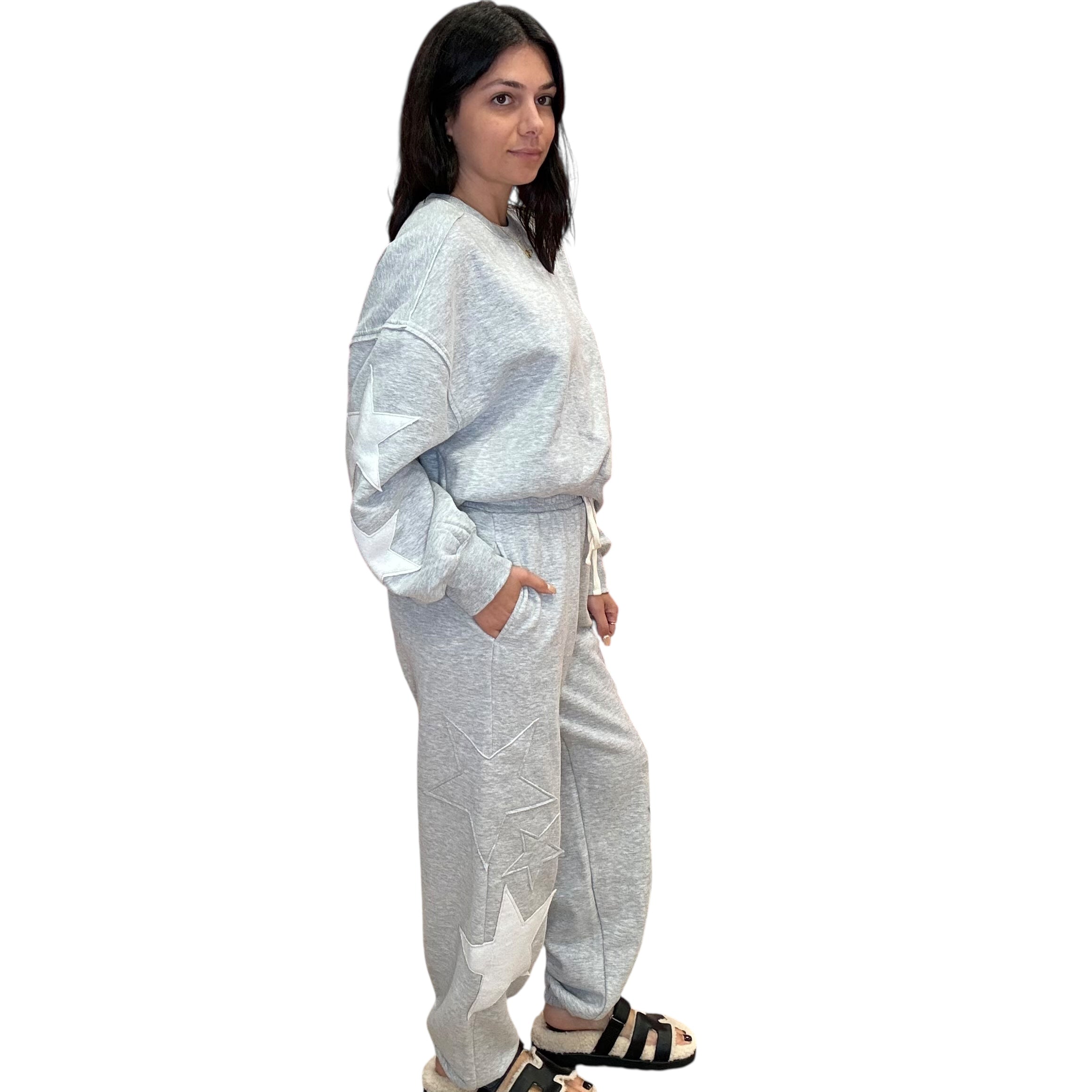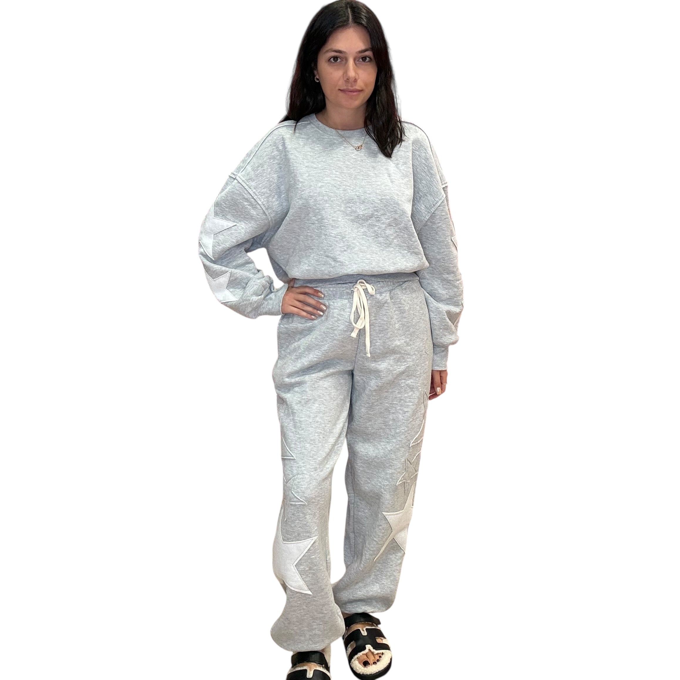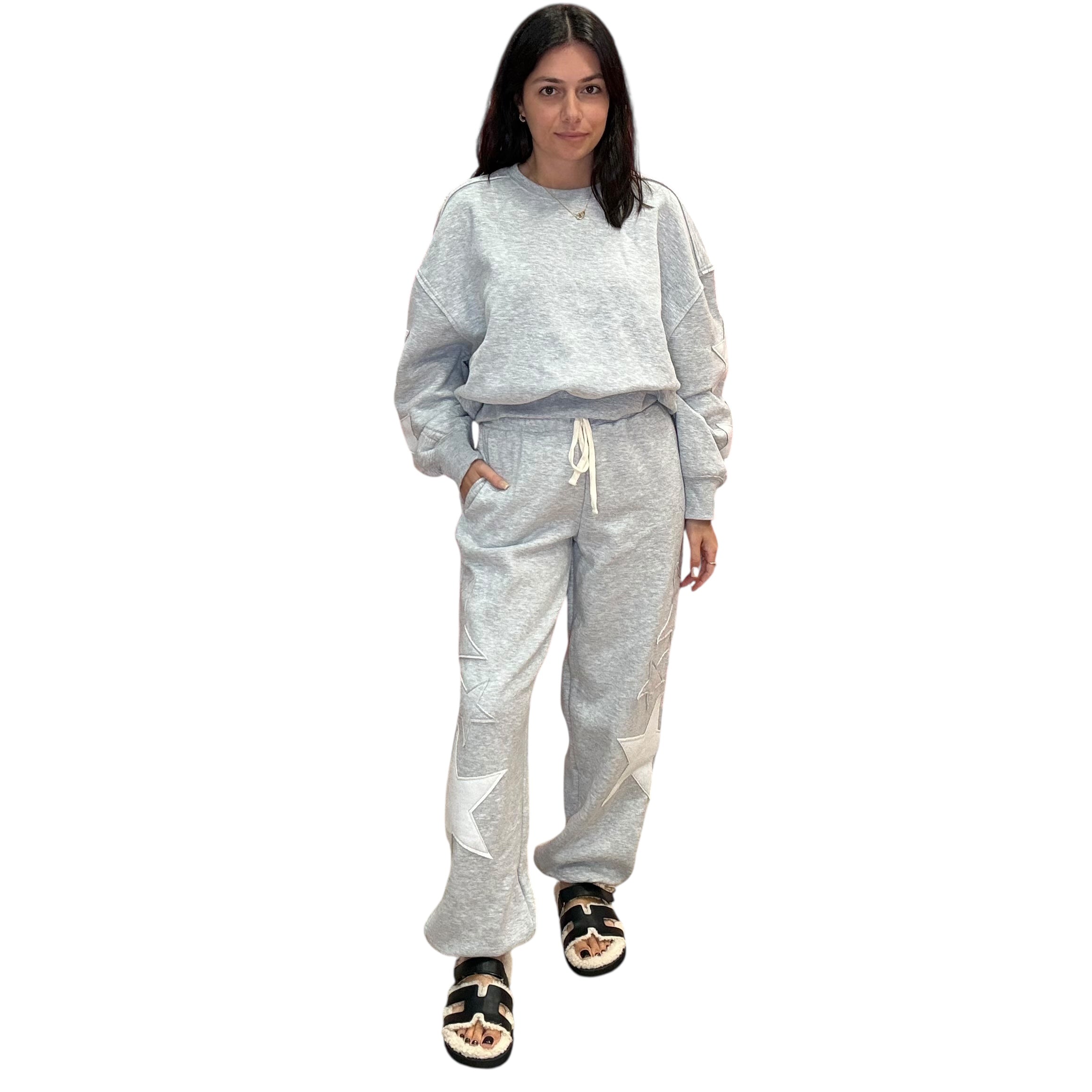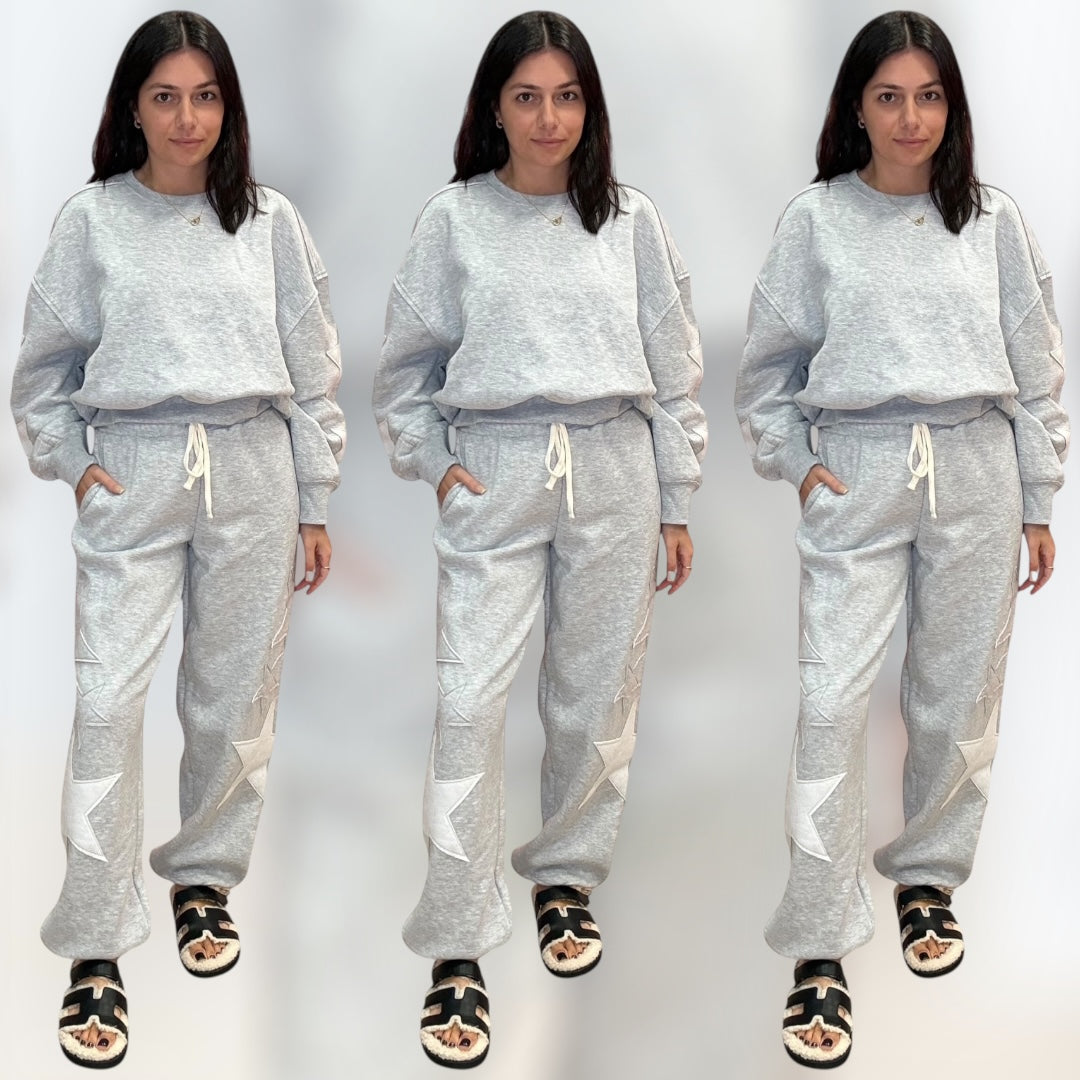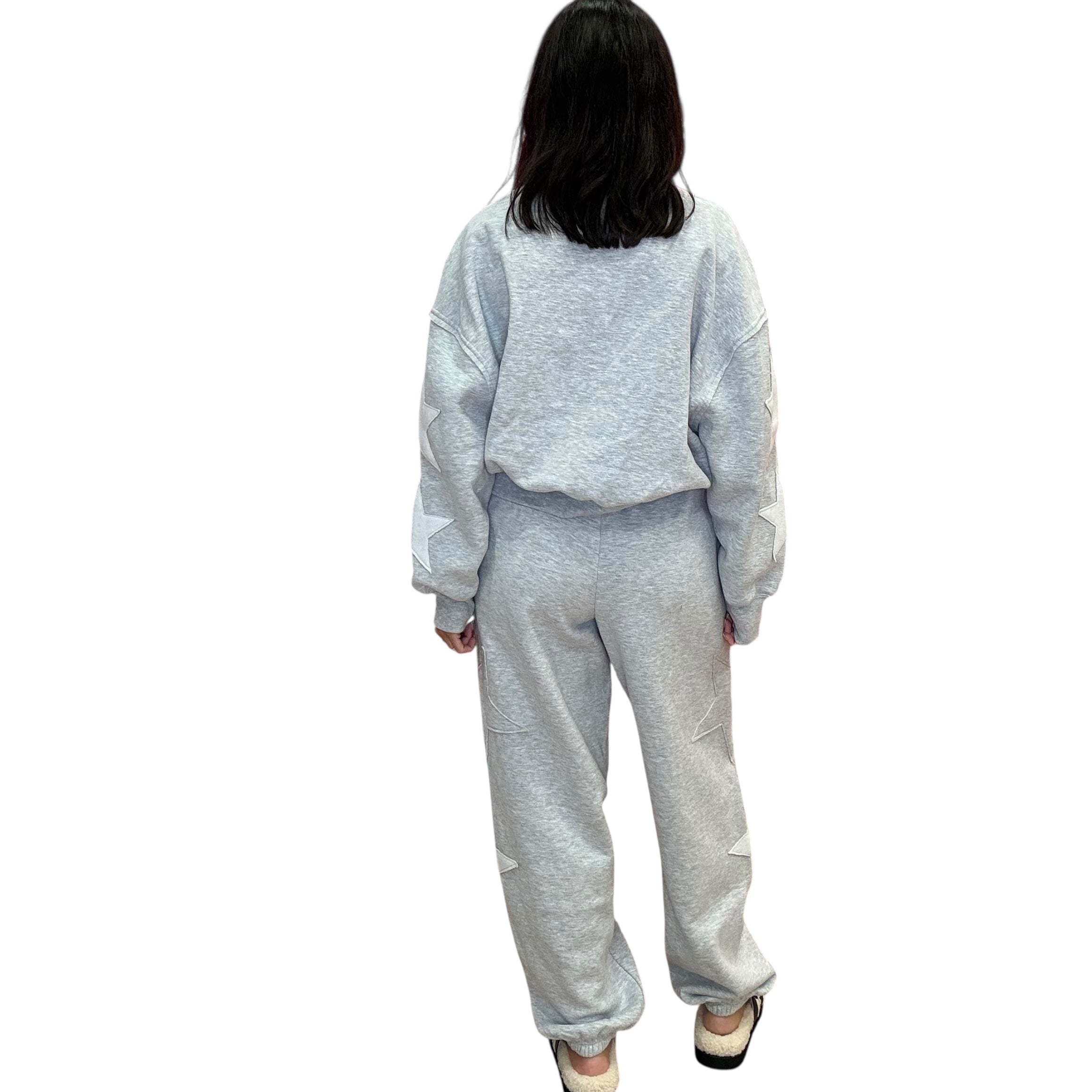 Star Patch Crewneck Jogger Set – Heather Gray