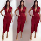 A sultry twist on a classic midi. With a deep V-neckline, flattering shirred seams, and a confident front slit, this cherry dress is ready for your boldest moments.