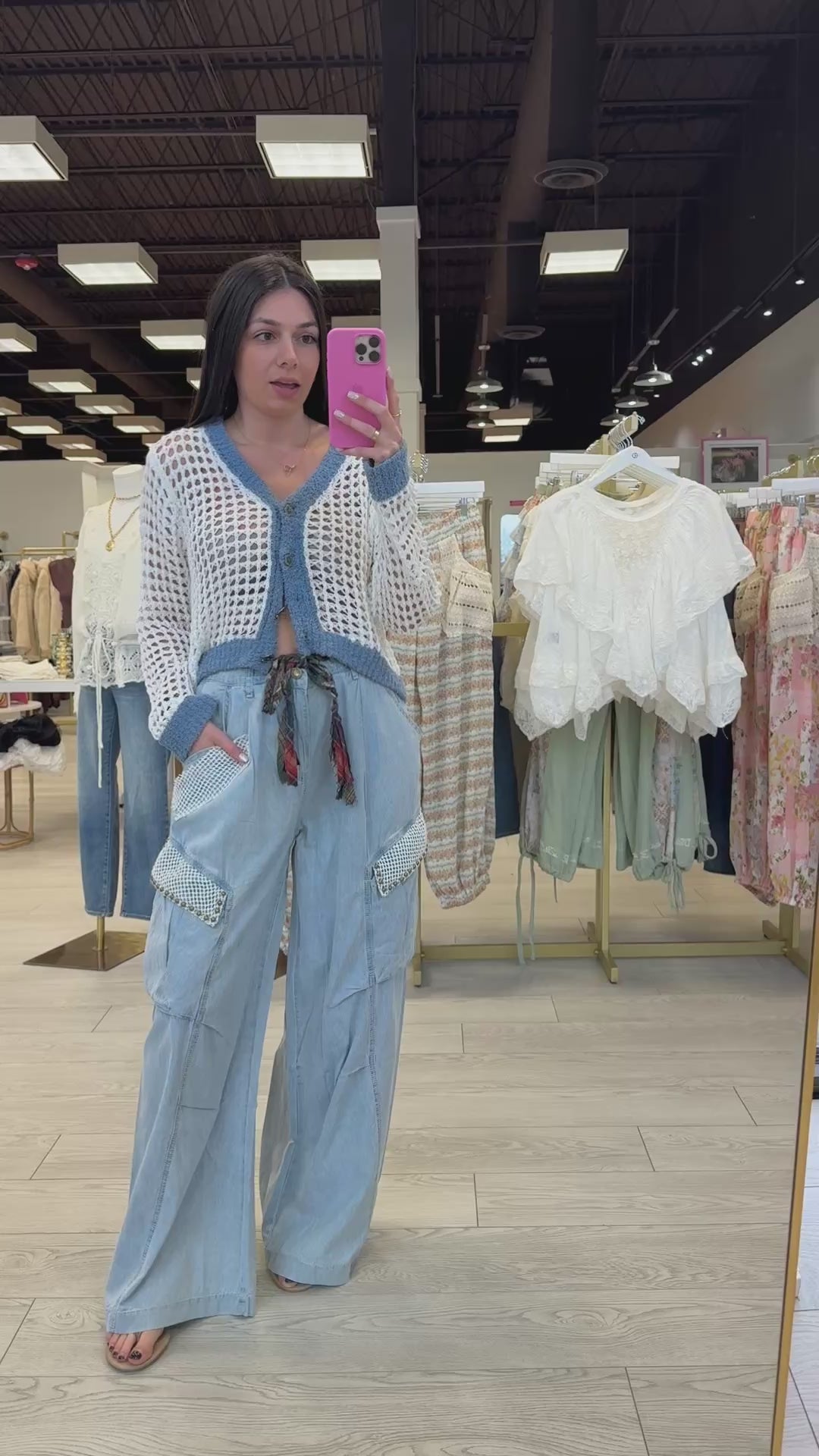 Cool, creative, and bold ✨ These wide-fit woven pants feature mixed mesh patches, stud accents, knee dart detailing, and novelty drawstring styling. A true statement piece with an edge.