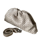 A neutral dream in soft woven nappa leather, this Italian-made oversized pouch is all about timeless sophistication. Carry it by hand for a sleek finish or add the shoulder/crossbody chain when you need hands-free ease.