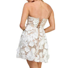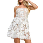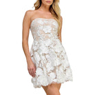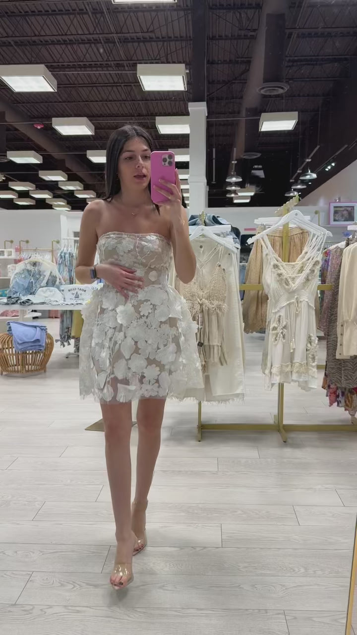 Romantic, flirty, and made for bridal showers, graduations, and summer nights 🤍✨ This white lace tube mini dress features a strapless silhouette with delicate floral embellishments and sheer lace detailing for that soft, feminine finish. Fitted through the body with just the right amount of stretch, it’s the kind of dress that turns heads without even trying.