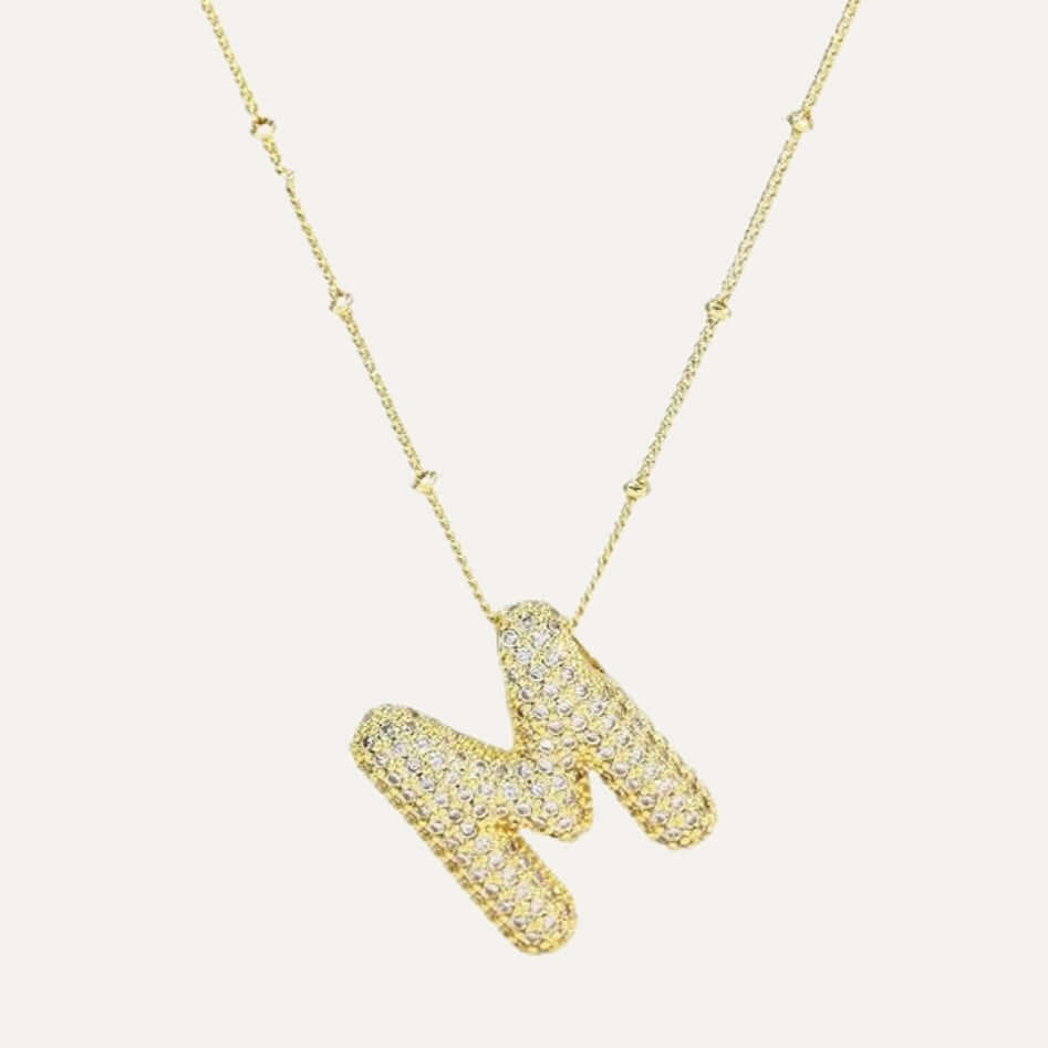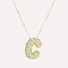 The Bubble Pave Initial Necklace features a charming bubble letter design adorned with sparkling pave stones, adding a personal touch to your everyday look.