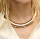 The Mega Cobra Collar Necklace is the ultimate power piece. Designed with a bold, vintage-French–inspired spiral, this structured collar makes a statement the moment you put it on. Crafted in high-shine gold-plated stainless steel, it features a mega fit that tapers perfectly toward the back for comfort while holding its sculptural shape. Waterproof, tarnish-resistant, and made to last—this one’s pure modern luxury.