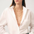 Alicia’s Styling Tip:Alicia loves layering Audrey with shorter gold chains or wearing it solo with a deep-V neckline or open button-down. It’s the definition of chic, no-effort style.