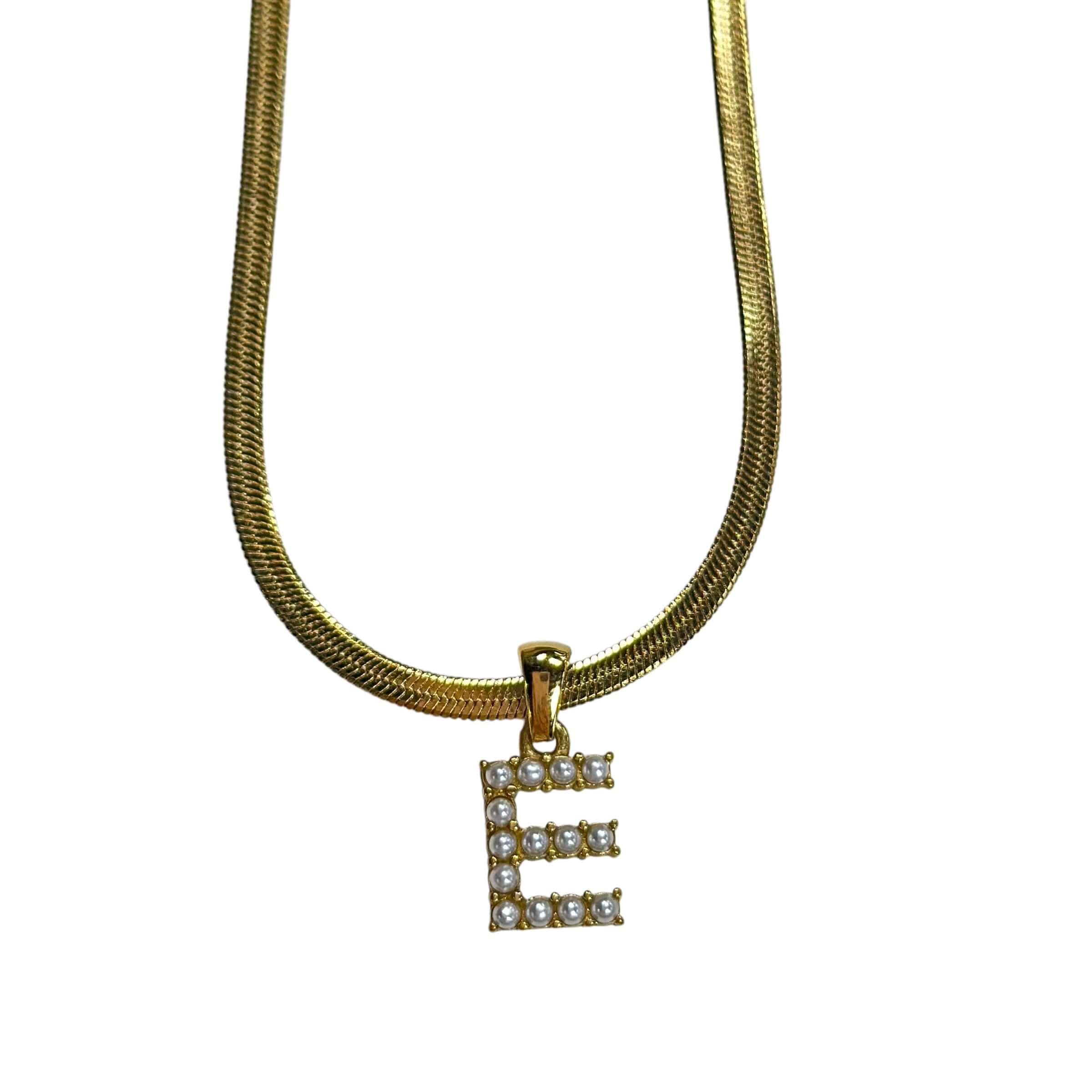 The Pearl Letter Herringbone Necklace blends classic and contemporary style with ease. The sleek herringbone chain showcases an initial charm adorned with delicate pearl accents, adding a touch of elegance to this personalized piece.