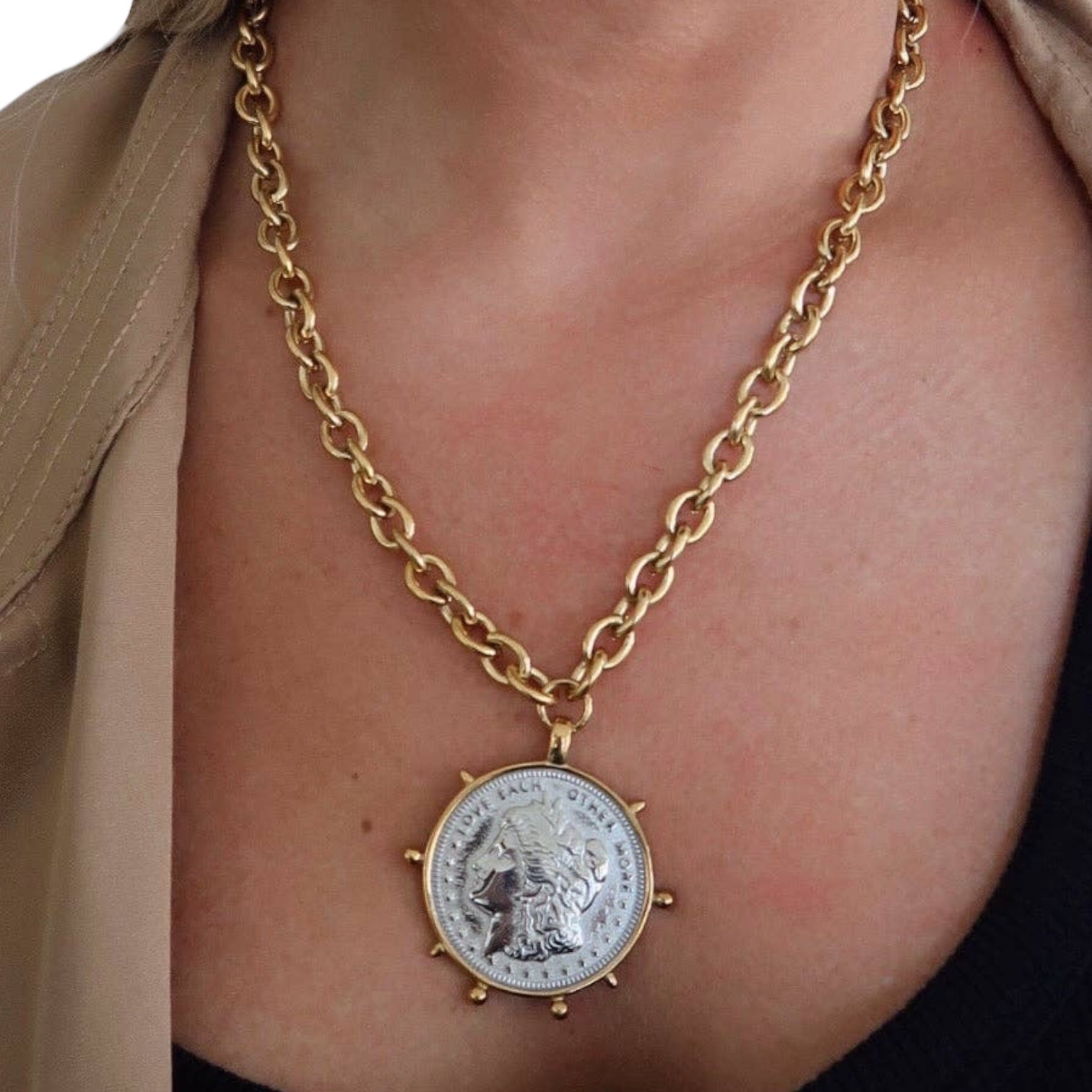 This two-tone coin necklace brings the perfect mix of modern and classic 🤍 Designed with an adjustable length 18–20 inch chain and timeless coin detail, it’s ideal for layering or wearing solo. Water-resistant and backed by a lifetime warranty, it’s a true everyday favorite ✨