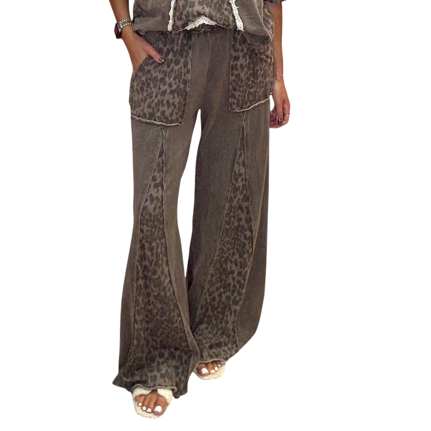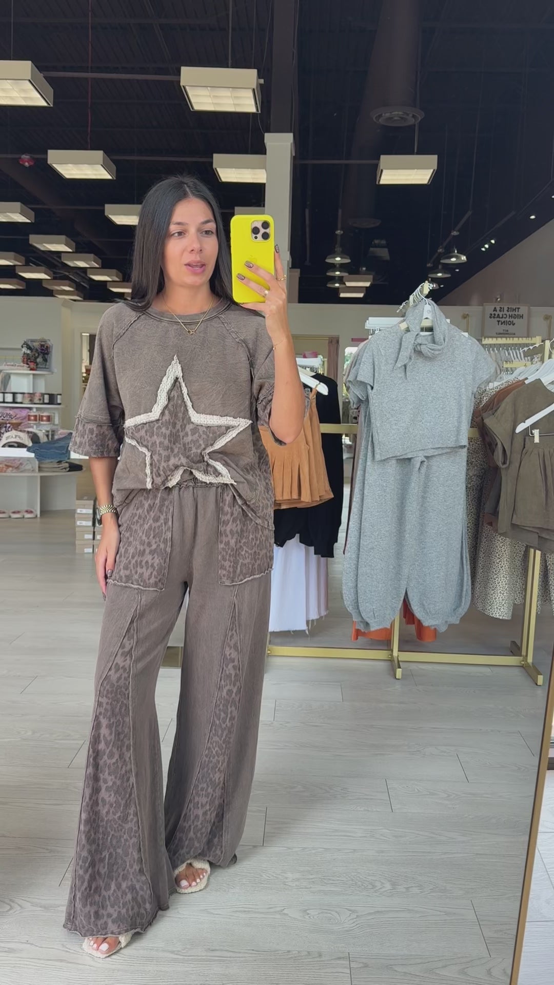 A cool-toned twist on the fan-favorite leopard flares. These feature the same stretchy waistband, wide leg, and mineral washed finish—now in an edgier ash palette.