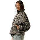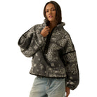 The coziest statement piece you’ll live in all season. This oversized sherpa pullover features a black-and-gray bandana print with a soft teddy texture and relaxed drop-shoulder sleeves. Designed with a half-zip front and an easy, slouchy fit that gives major off-duty vibes.